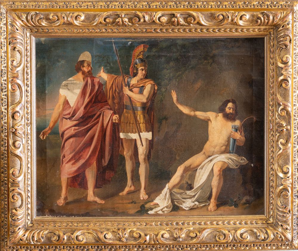 Maestro neoclassico dell'inizio XIX secolo. "Scena storica". Olio su tela. Cm...