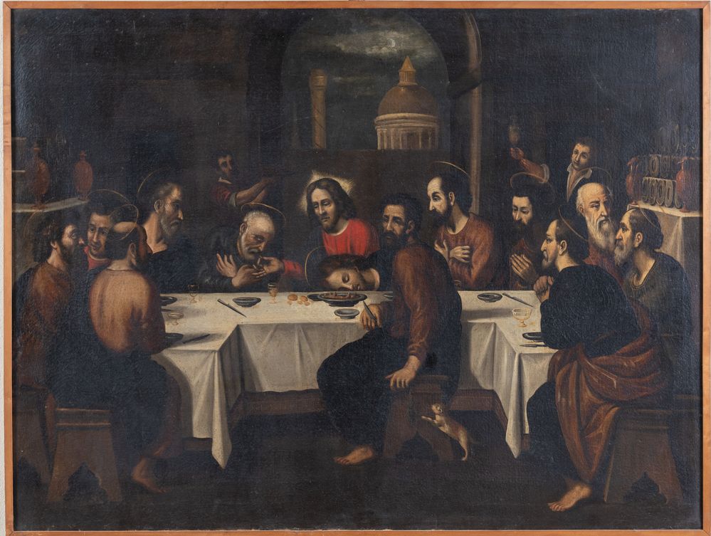 Lotto 233 | Maestro del XVII secolo. "Ultima cena". Olio su tela. Cm 87x115.