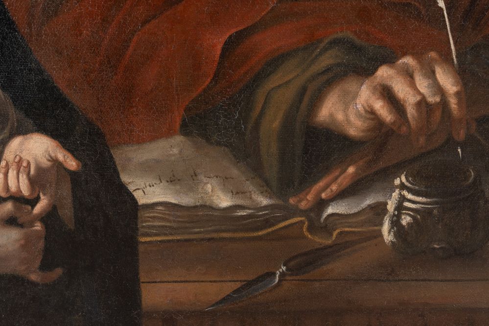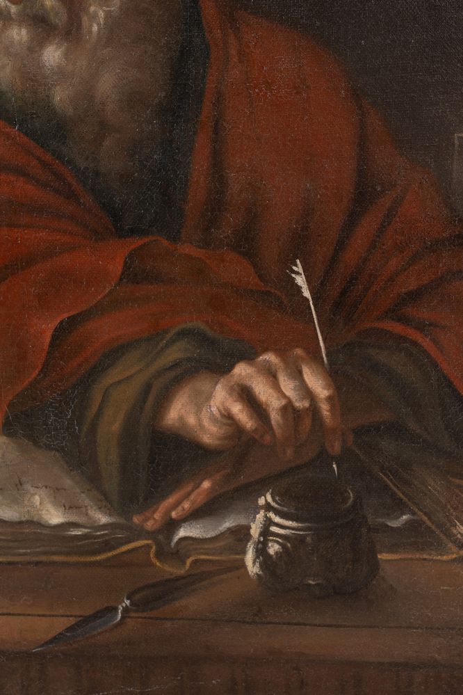 Maestro caravaggesco. "San Matteo". Olio su tela. Cm 104x137.