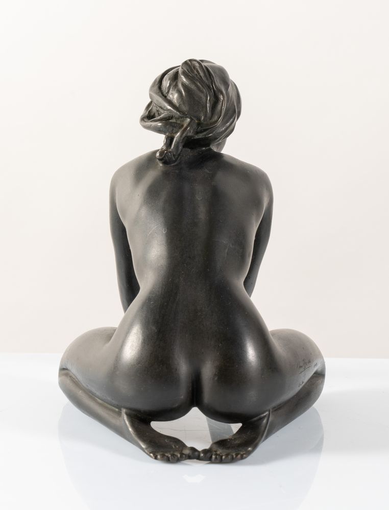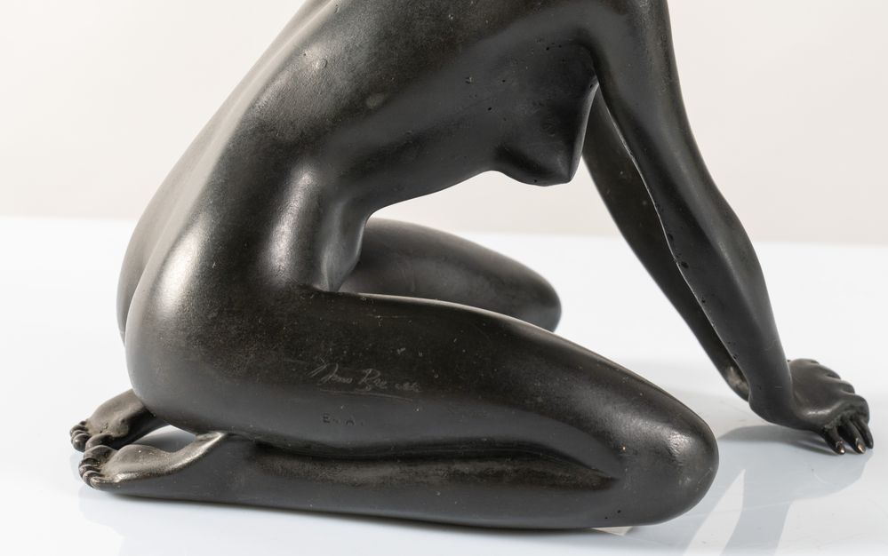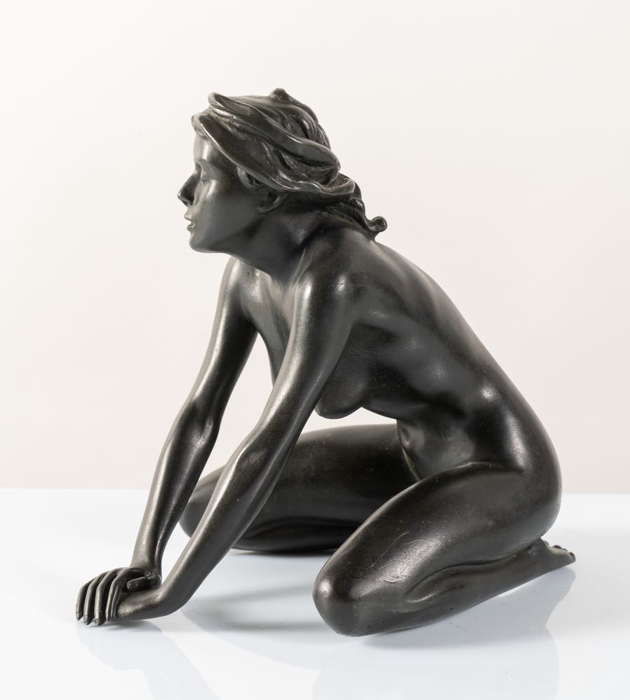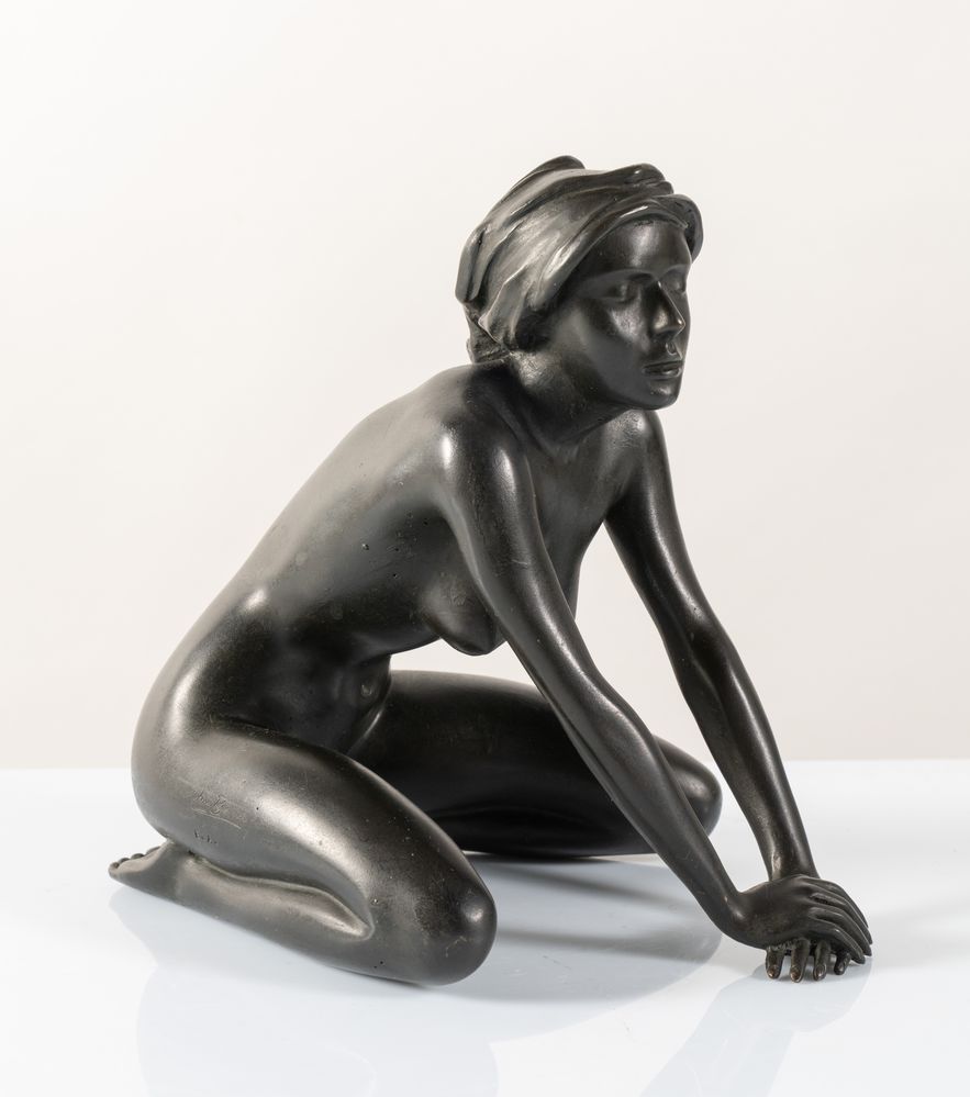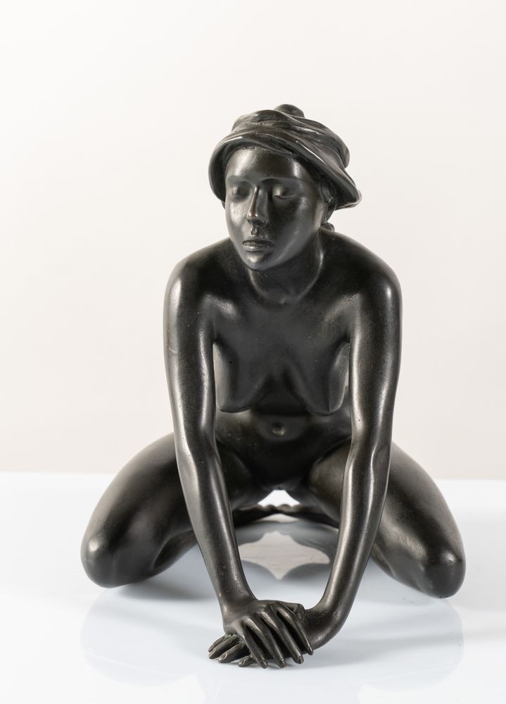 ARNO BREKER (Elberfeld 1900 - Düsseldorf 1991) "Kniendes Mädchen mit Kopftuch", 1977. Scultura in bronzo. Cm 20x16x21. A lato reca firma, tiratura E.A. e timbro della fonderia Venturi Arte.