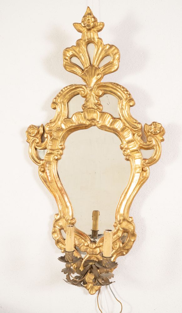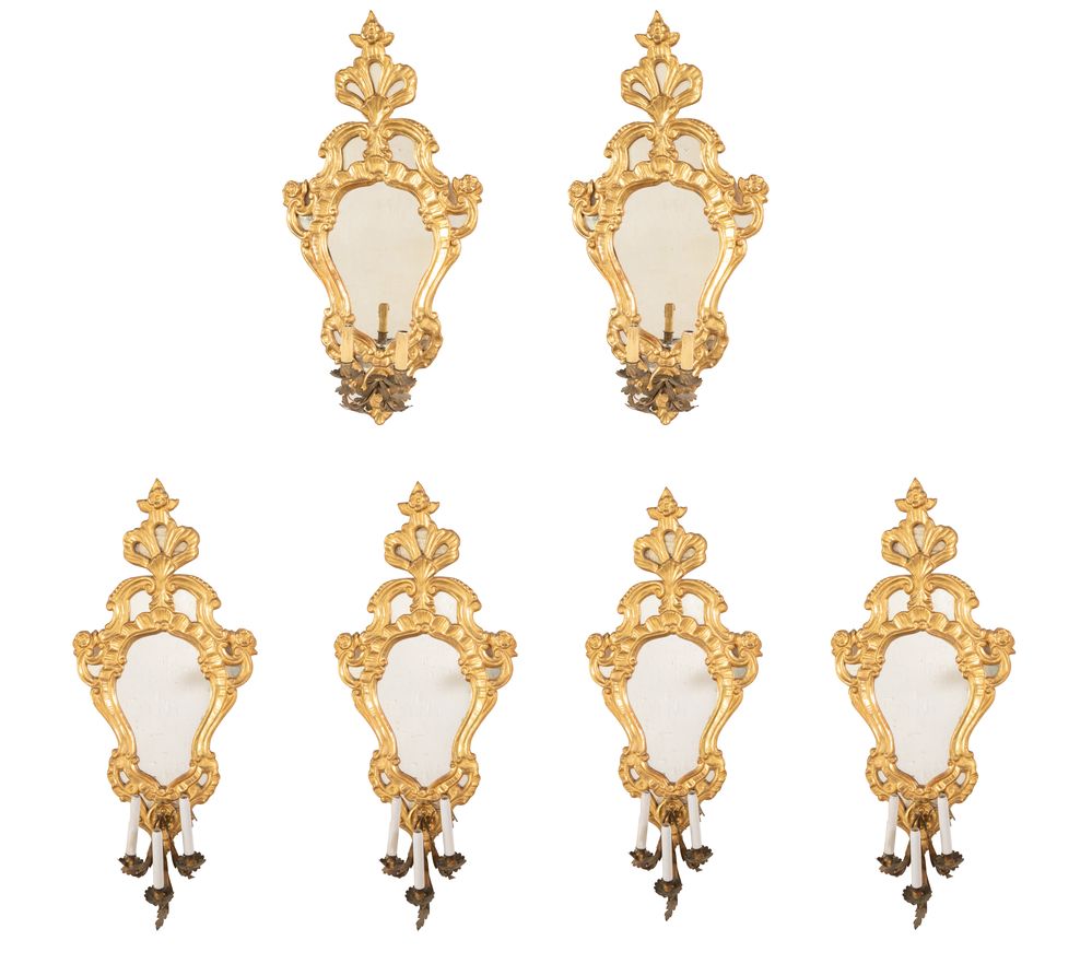 Lotto composto da sei ventole in legno intagliato e dorato. Lombardia/Veneto, XVIII secolo. Rispettivamente di cm 110x49x18 e cm 100x49x26. (mancanze e ridorature)