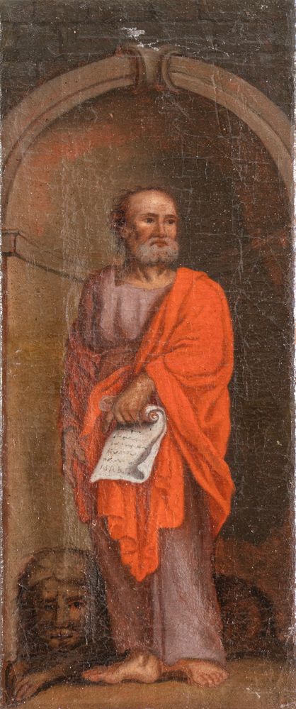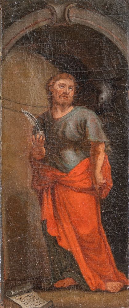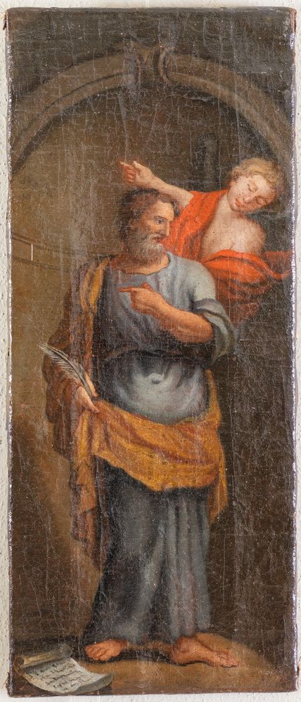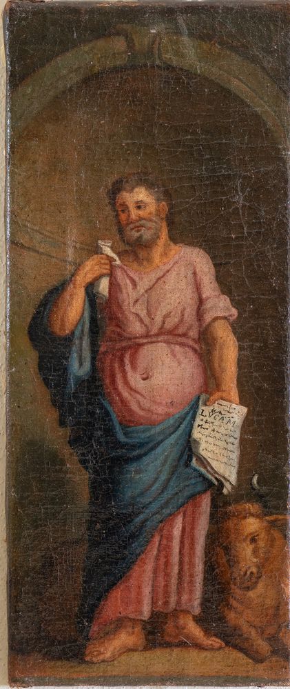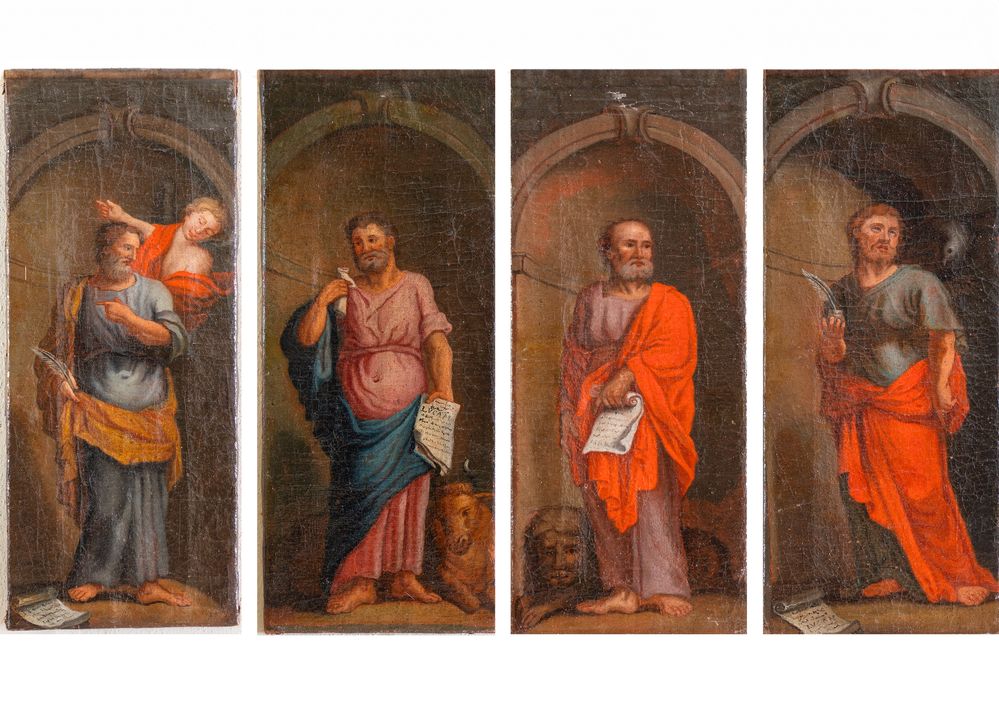 Maestro del XVII secolo. "Quattro evangelisti". Lotto composto da quattro olii su tela. Cadauno di cm 48,5x20.