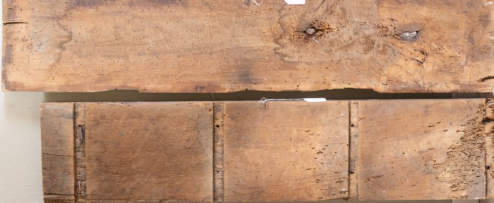 Maestro del XX secolo, sui modi del XV secolo. "Scene di corte". Coppia di olii su tavola. Rispettivamente di cm 26.5x118 e cm 25x128.
