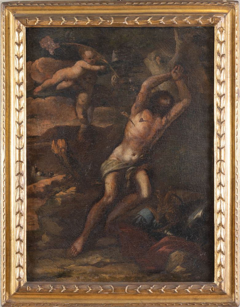 Maestro del XVII secolo. "San Sebastiano". Olio su tela. Cm 99x74.5. Cornice coeva ridorata.