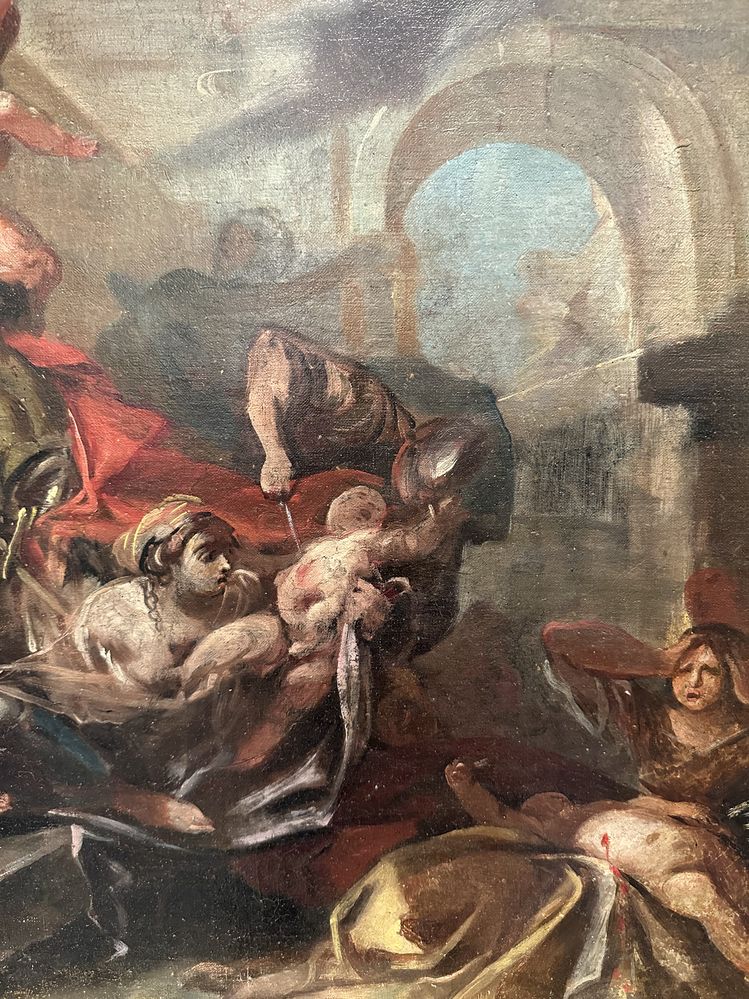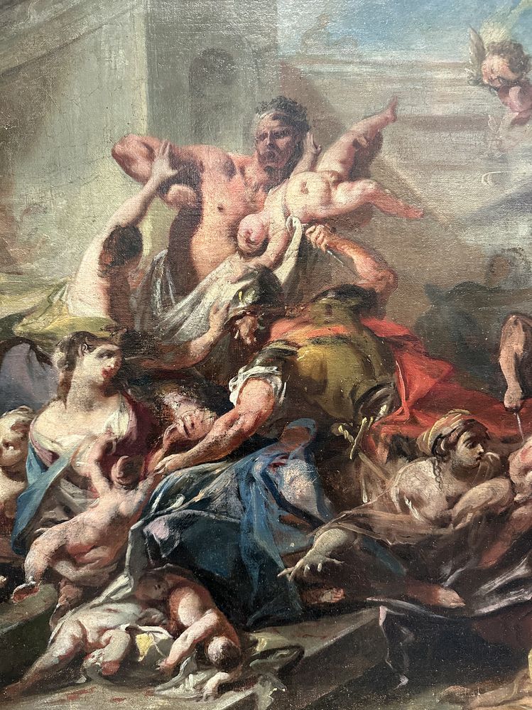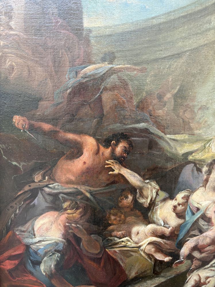 CARLO INNOCENZO CARLONE, attr. "Strage degli innocenti". Olio su tela. Cm 74,5x100.