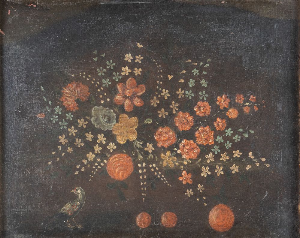 Maestro del XVIII secolo. “Coppia di nature morte”. Olio su tela. Cadauna di cm 48x61.