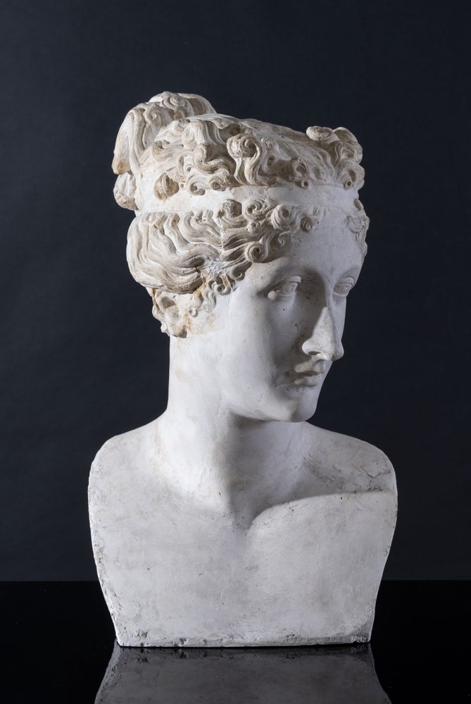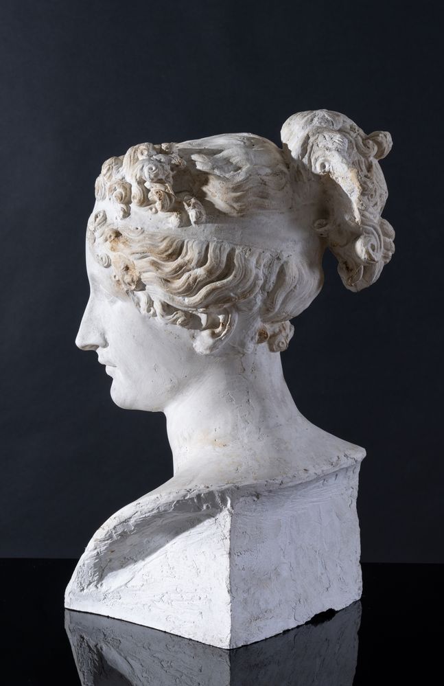 Manifattura italiana del XIX secolo - XX secolo. Calco in gesso raffigurante Busto della Venere Italica di Antonio Canova. Cm 47x26x30.