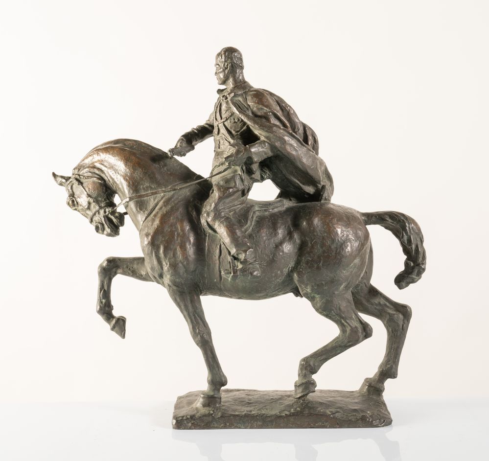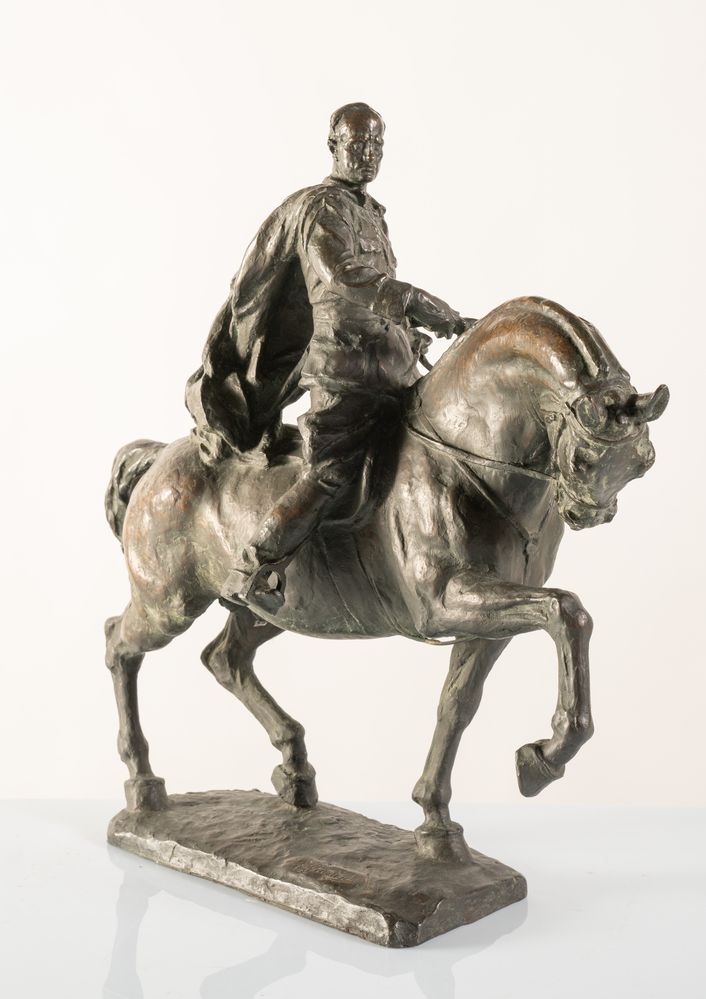 GIUSEPPE GRAZIOSI (Savignano sul Panaro 1879 - Firenze 1942) "Modello per il monumento equestre di Benito Mussolini". Scultura in bronzo. Cm 60x62x25. Alla base reca firma G. Graziosi e timbro della fonderia G. Vignali Firenze.