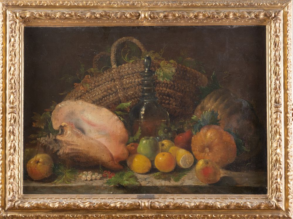 LUIGI SERRA (Bologna 1846 – 1888) "Natura morta". Olio su tela. Cm 53x75. Provenienza: importante collezione privata Bologna. Al retro reca timbro parzialmente leggibile.