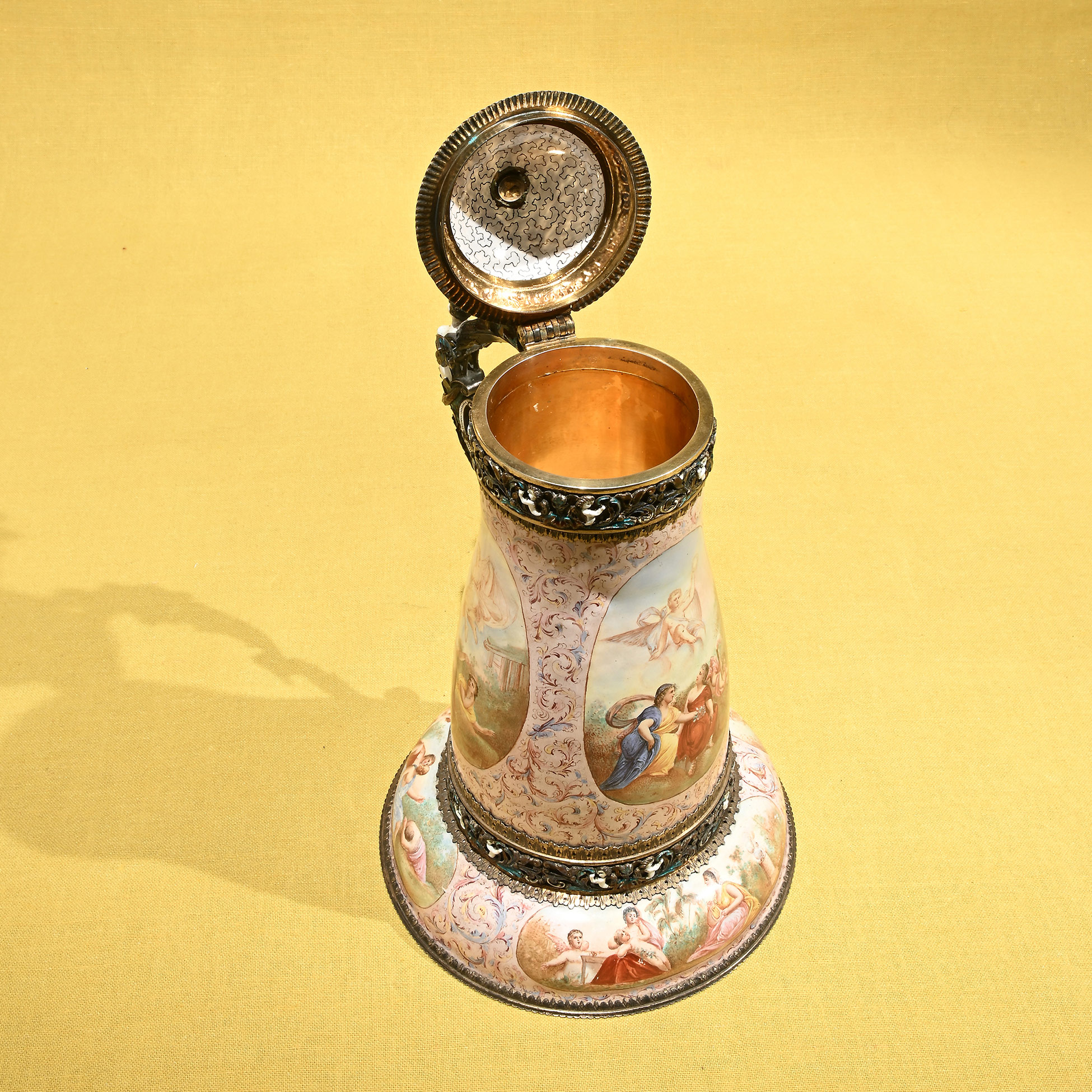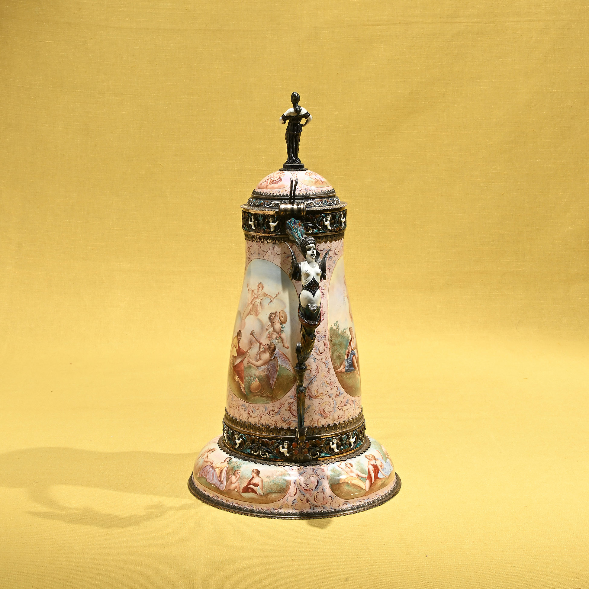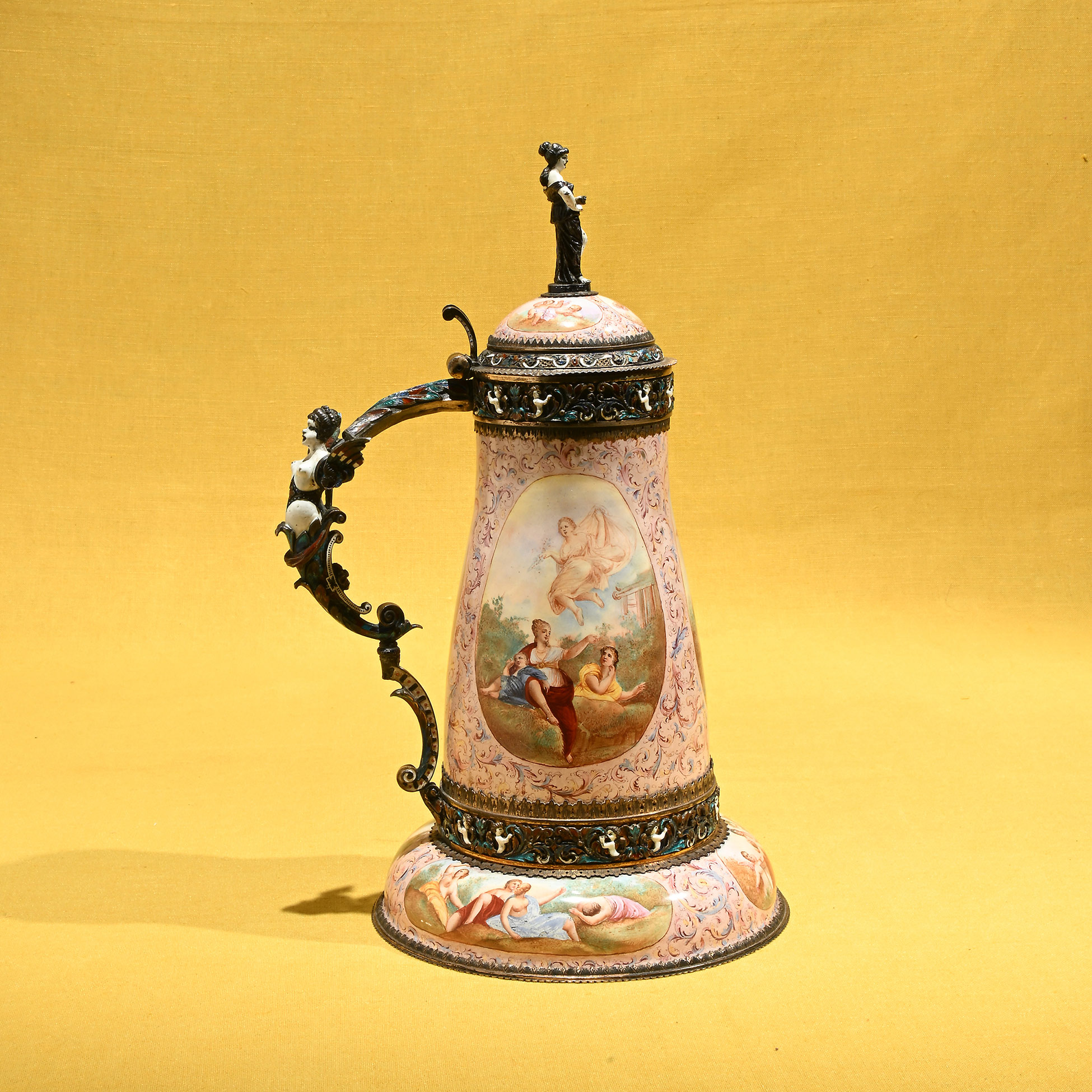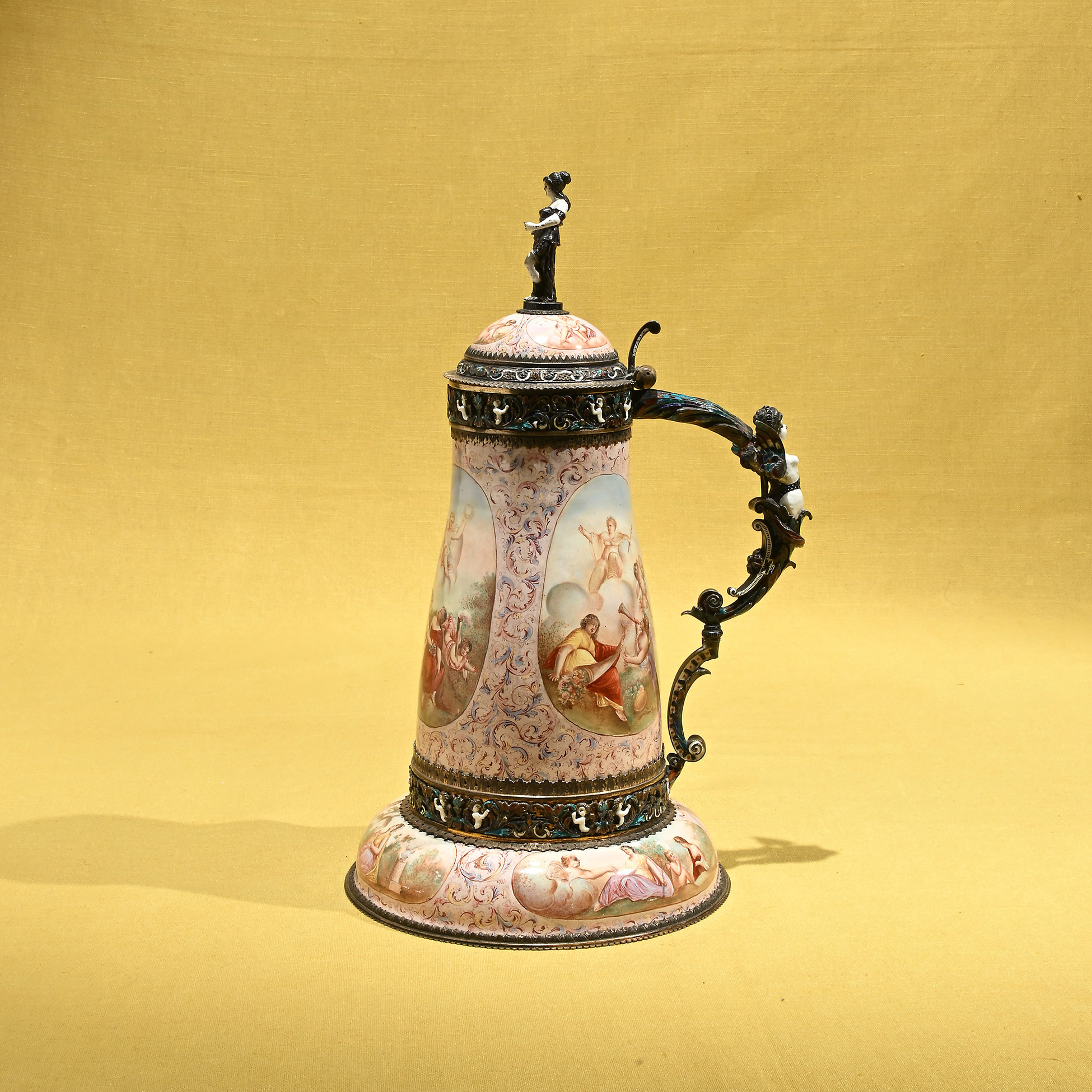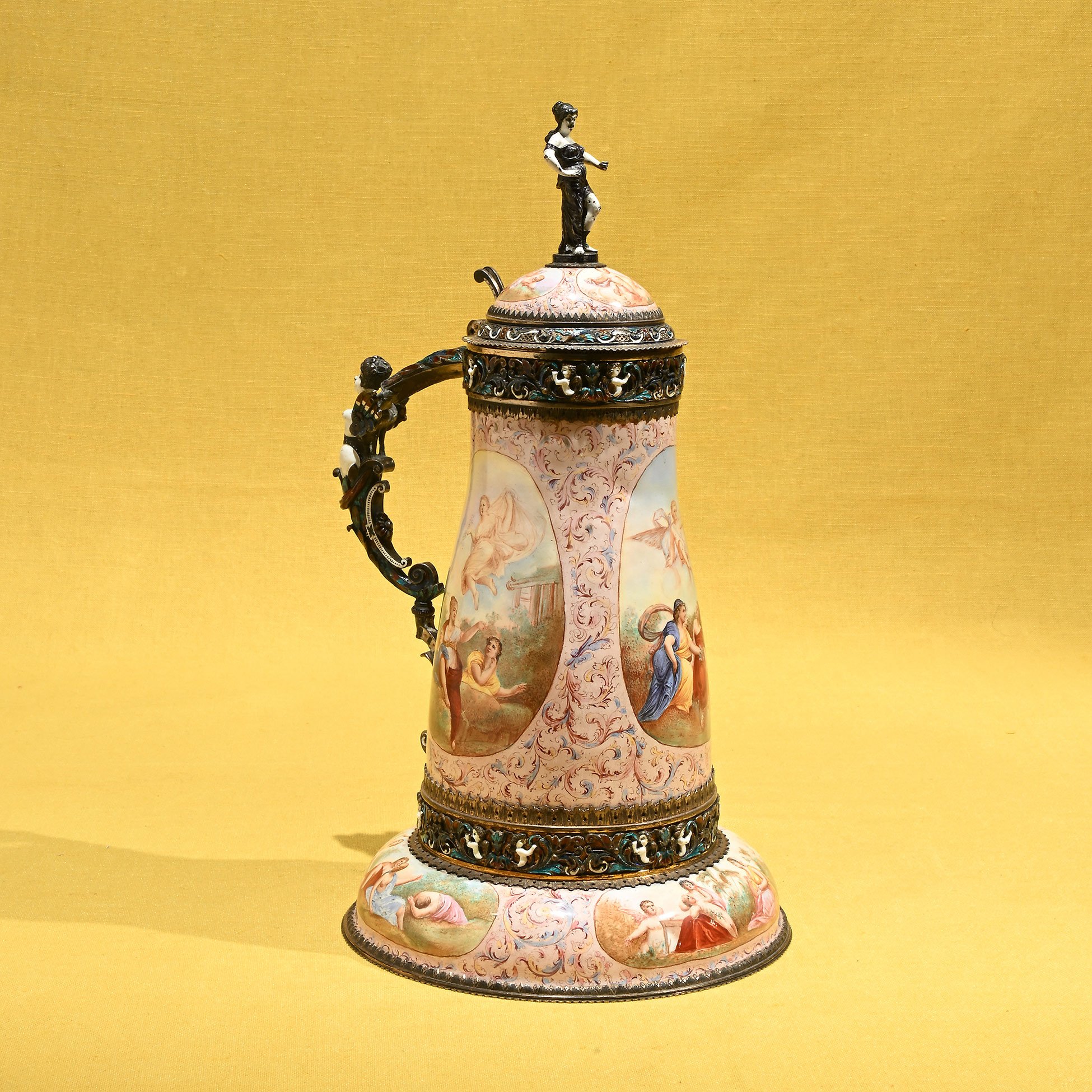 Tankard viennese smaltato, inizi del XIX secolo Dimensioni complessive 27x18x15.5 cm.
