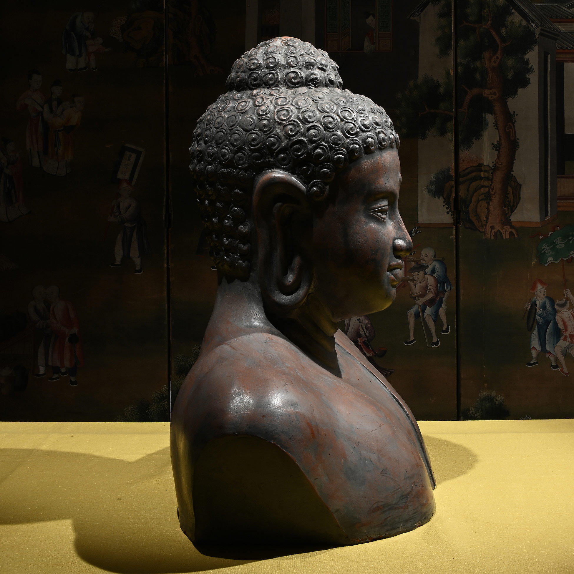 Scultura in terracotta raffigurante Buddha, manifattura orientale del XX secolo