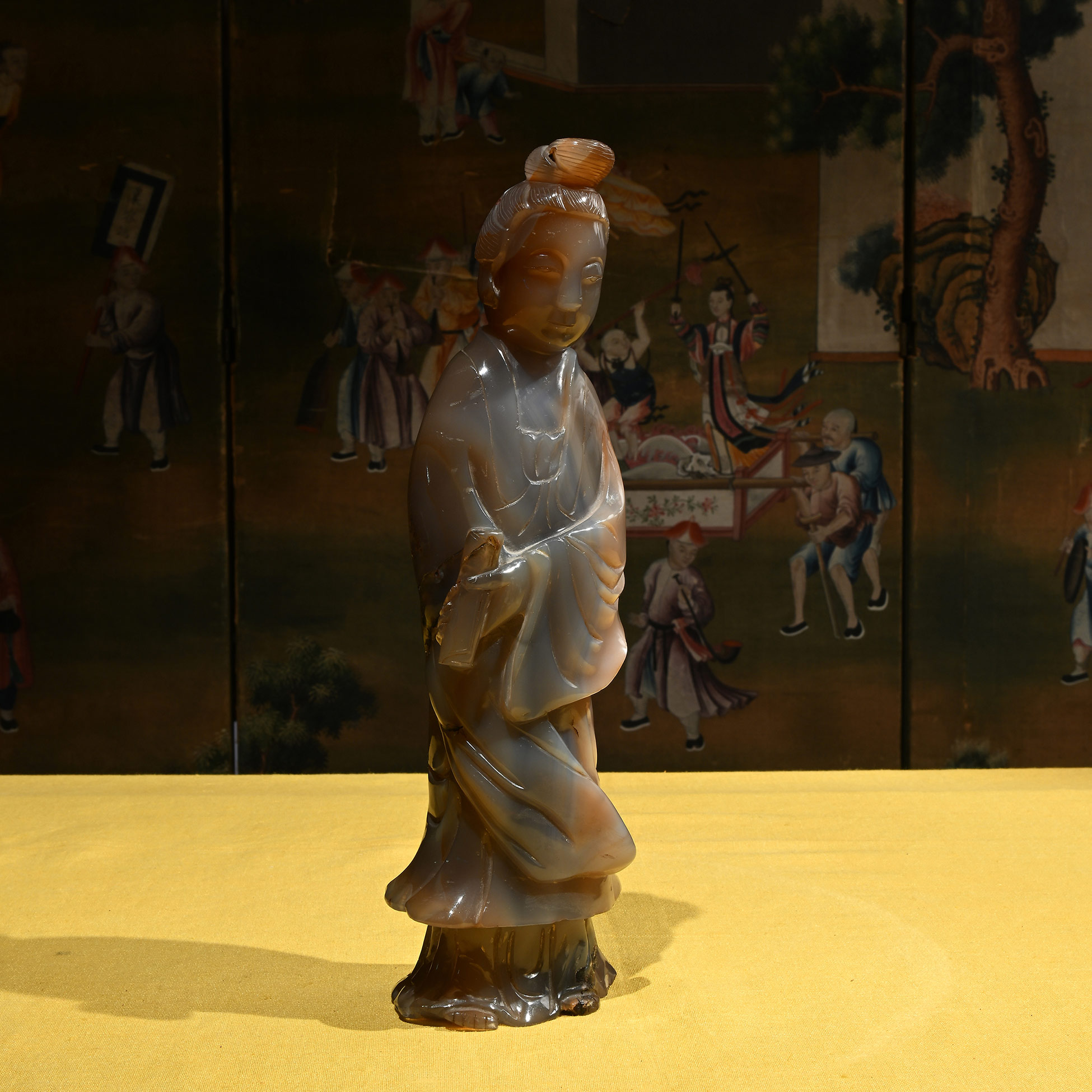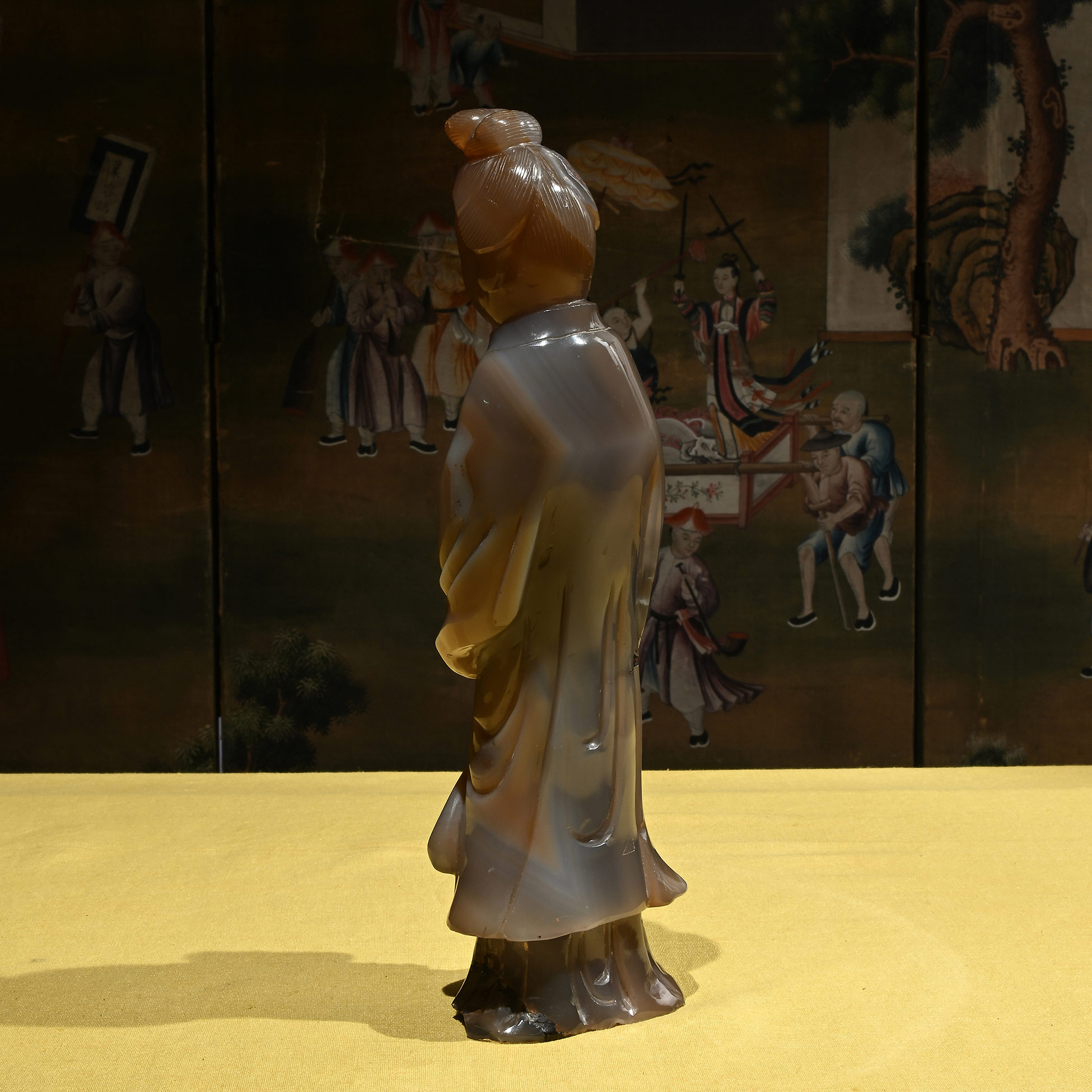 Scultura in agata, Cina fine del XIX secolo Priva del basamento originale in legno. Dimensioni complessive 31x9,5x6,5 cm.