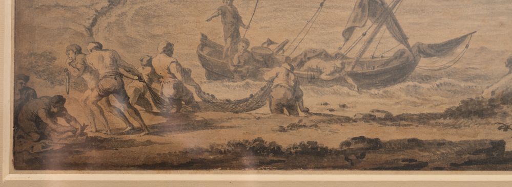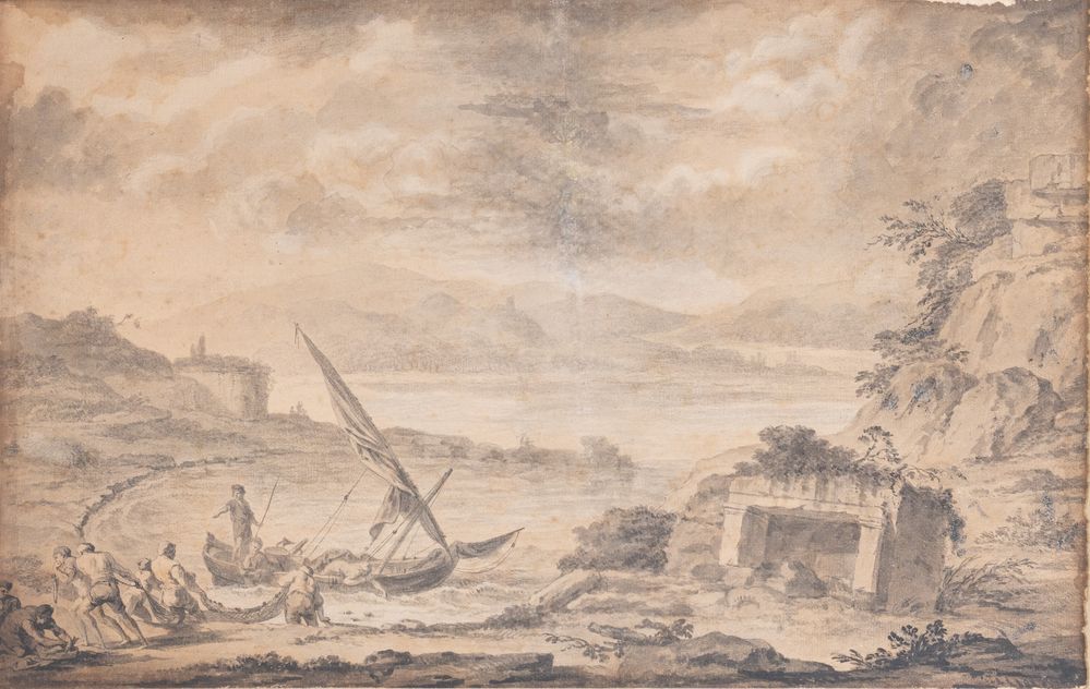 Claude Joseph Vernet (Avignone 1714 - Parigi 1789), attr. "Senza titolo". Acquerello su carta. Cm 28,5x45. Opera firmata in basso a sinistra Joseph Vernet.