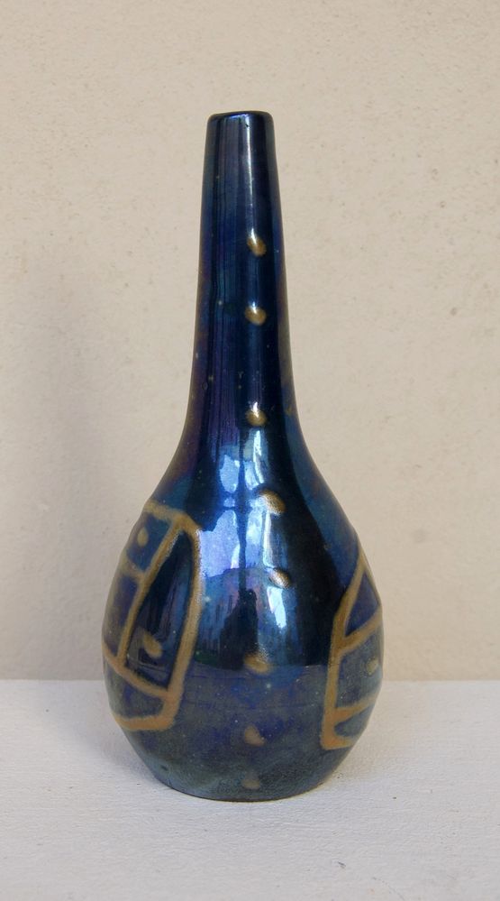 GUERRINO TRAMONTI (Faenza 1915 - 1992) Vaso in ceramica smaltata policroma. Opera firmata sotto la base Tramonti, Faenza. Cm 18x7,5x7,5.