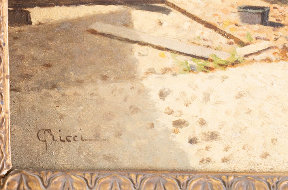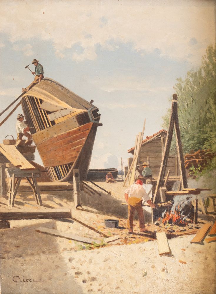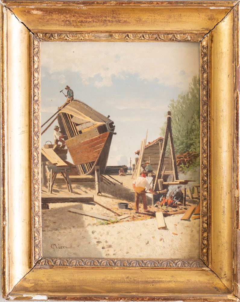 GUIDO RICCI (Casorate Primo 1836 - Gurone 1897) "Squero". Cm 25x19. Opera firmata in basso a sinistra G. Ricci.