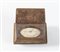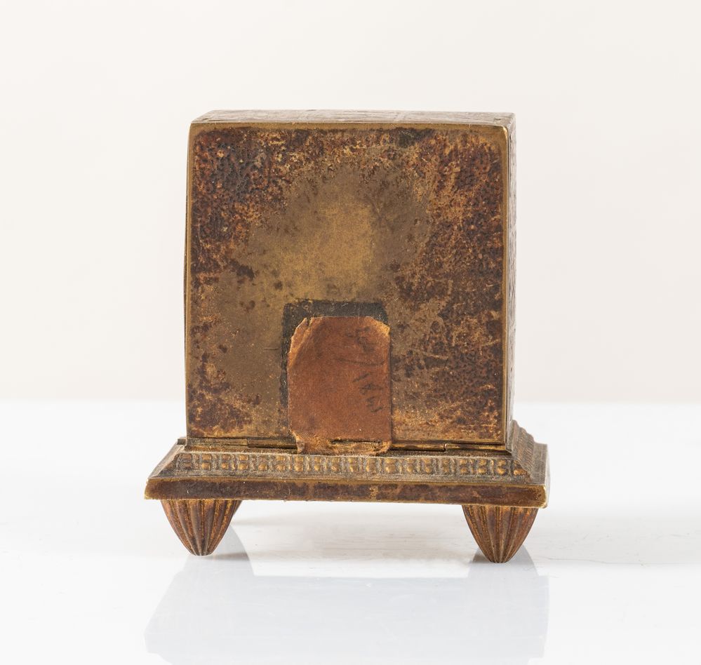 Piccolo orologio da tavolo in bronzo dorato con cassa con motivi floreali. Anni '20 del XX secolo. Movimento Zenith. Cm 7x6x4.
