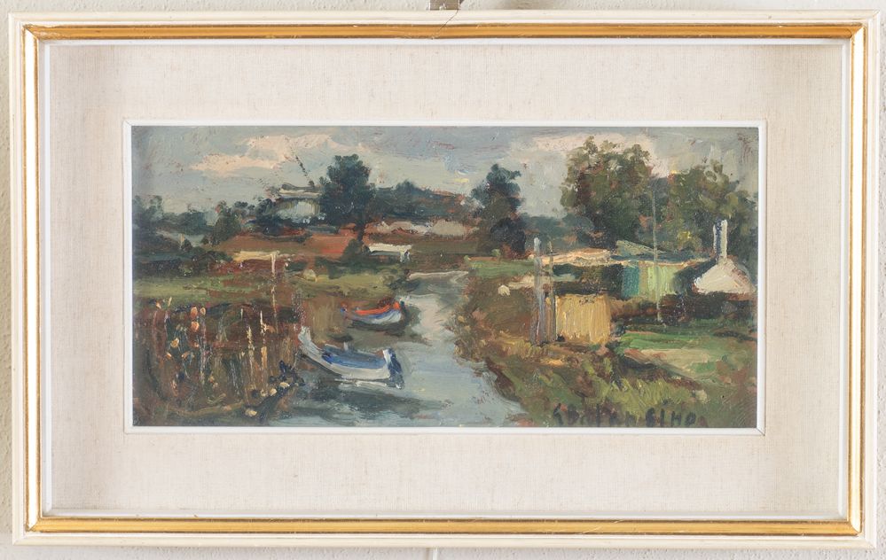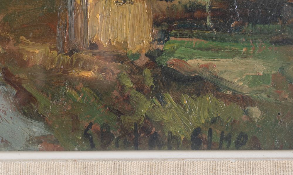 GIOVANNI BALANSINO (Savigliano 1912 - Rescaldina 1986) "Paesaggio", 1968. Olio su faesite. Cm 20x39,5. Opera firmata in basso a destra G. Balansino.