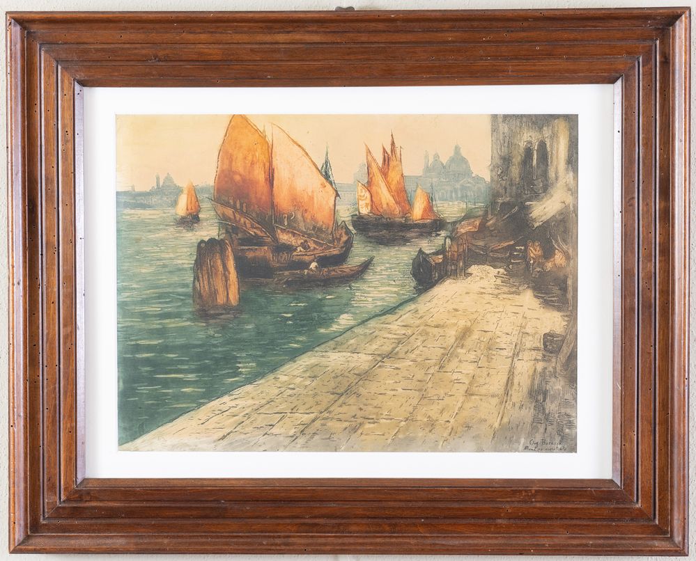 AUGUSTO BARACCHI (Modena 1878 - Milano 1942) "Venezia". Monotipo acquatinta. Cm 36x49. Opera firmata in basso a destra Aug. Baracchi.