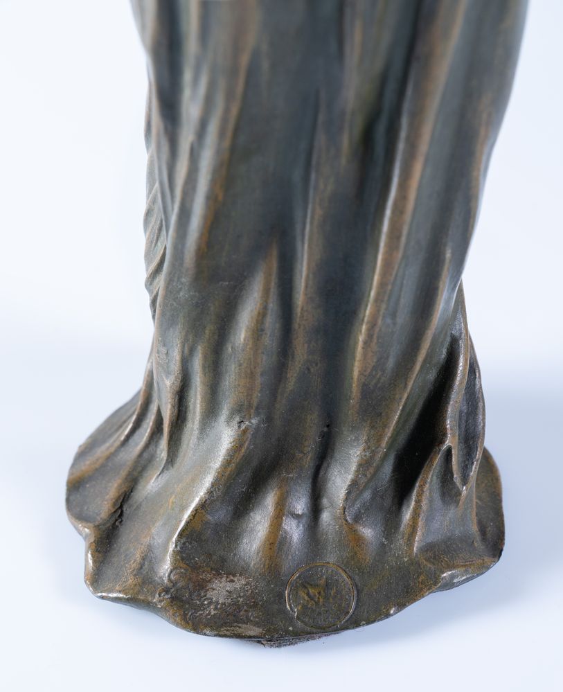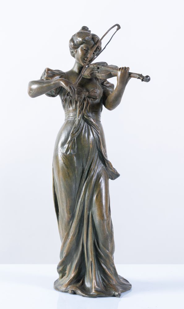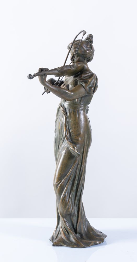 JEAN-LOUIS GRÉGOIRE (Parigi 1840 - 1890). Scultura in bronzo raffigurante giovane donna che suona il violino. Cm 35x12x14. Al retro della base firma Grégoire e marchio della fonderia.