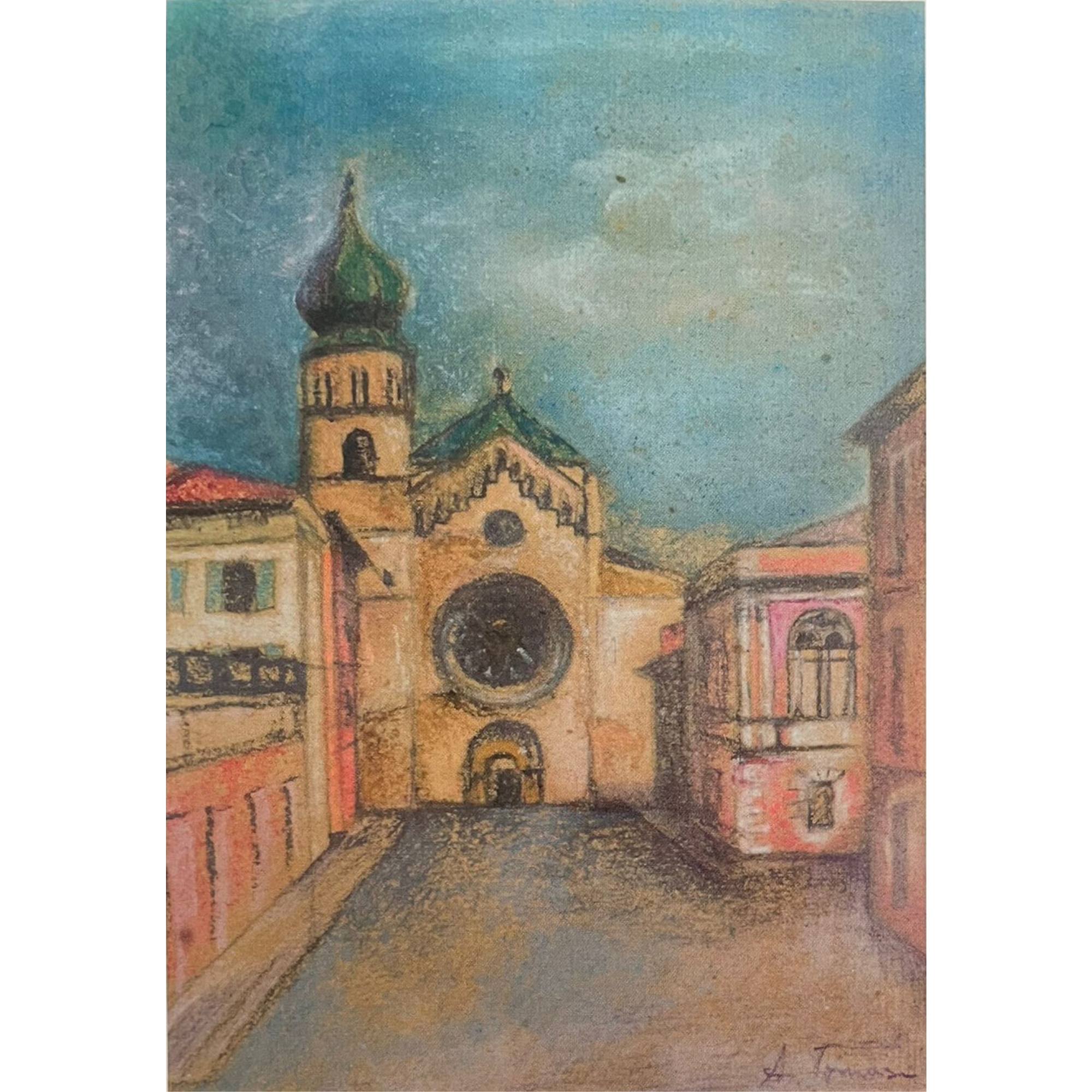 TOMASI A. - IL DUOMO DI TRENTO DA VIA VERDI 29X20 TECNICA MISTA SU CARTA