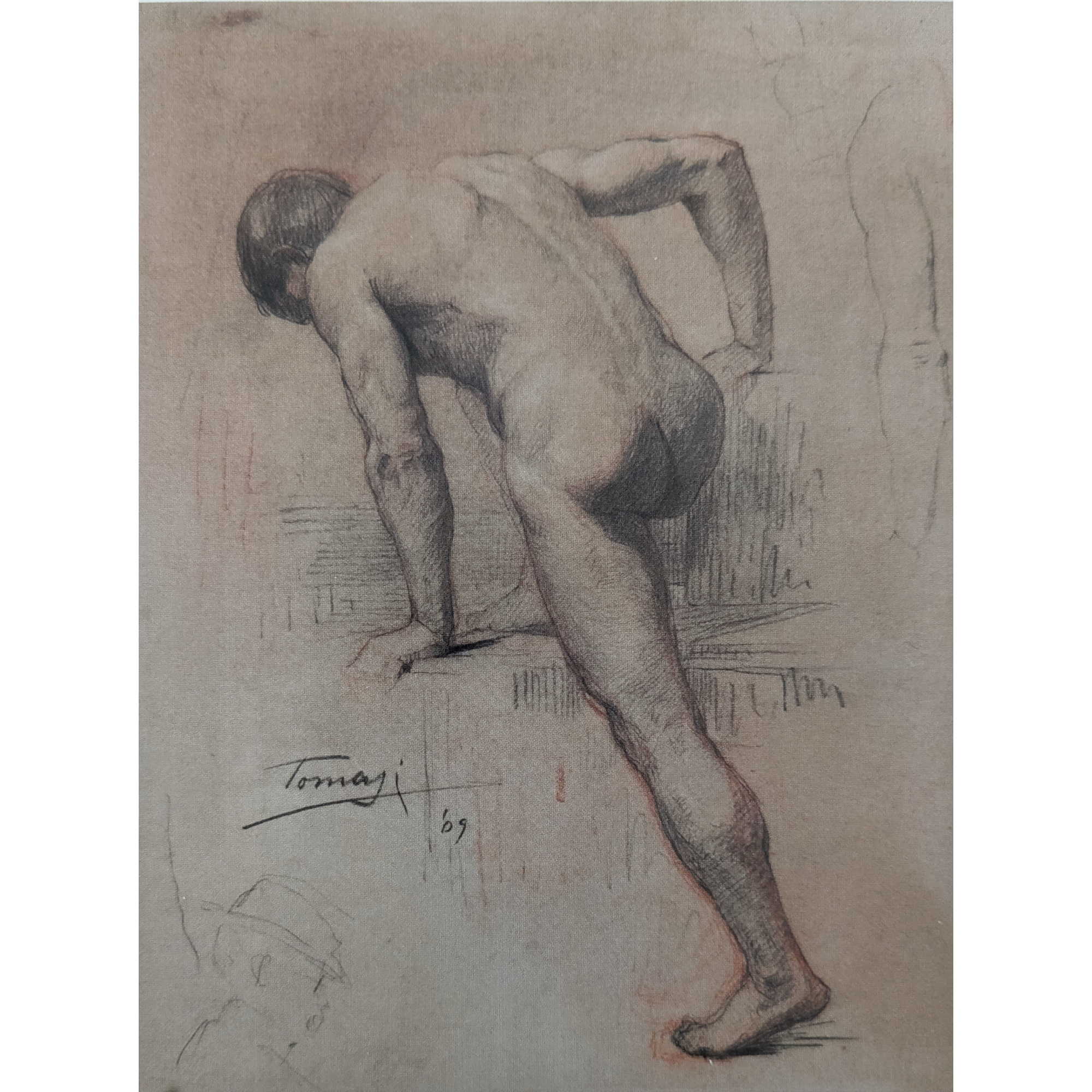 TOMASI ODDONE - NUDO VIRILE E STUDI ANATOMICI MATITE E PASTELLO SU CARTA (1909). AL VERSO OTTO REINELT. DUE DONNE. CHINA SU CARTA COLORATA. 20X19 30X22.5
