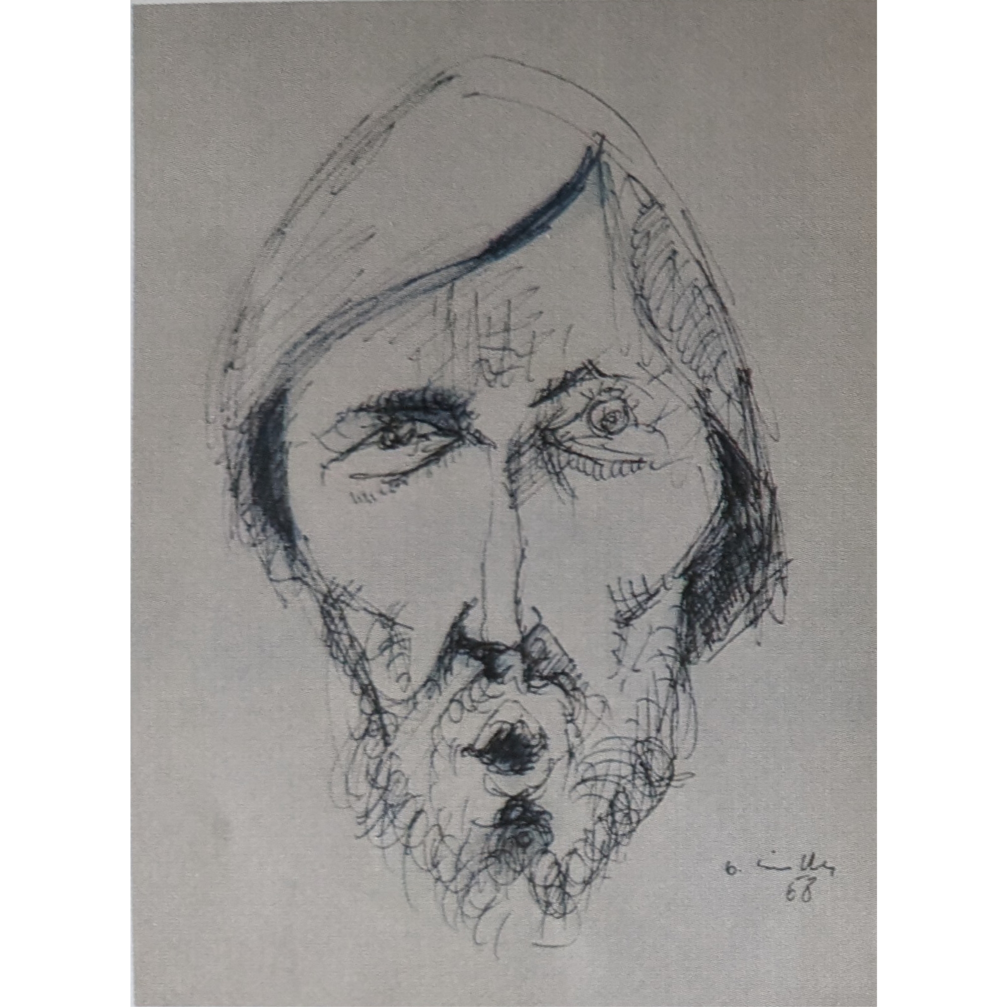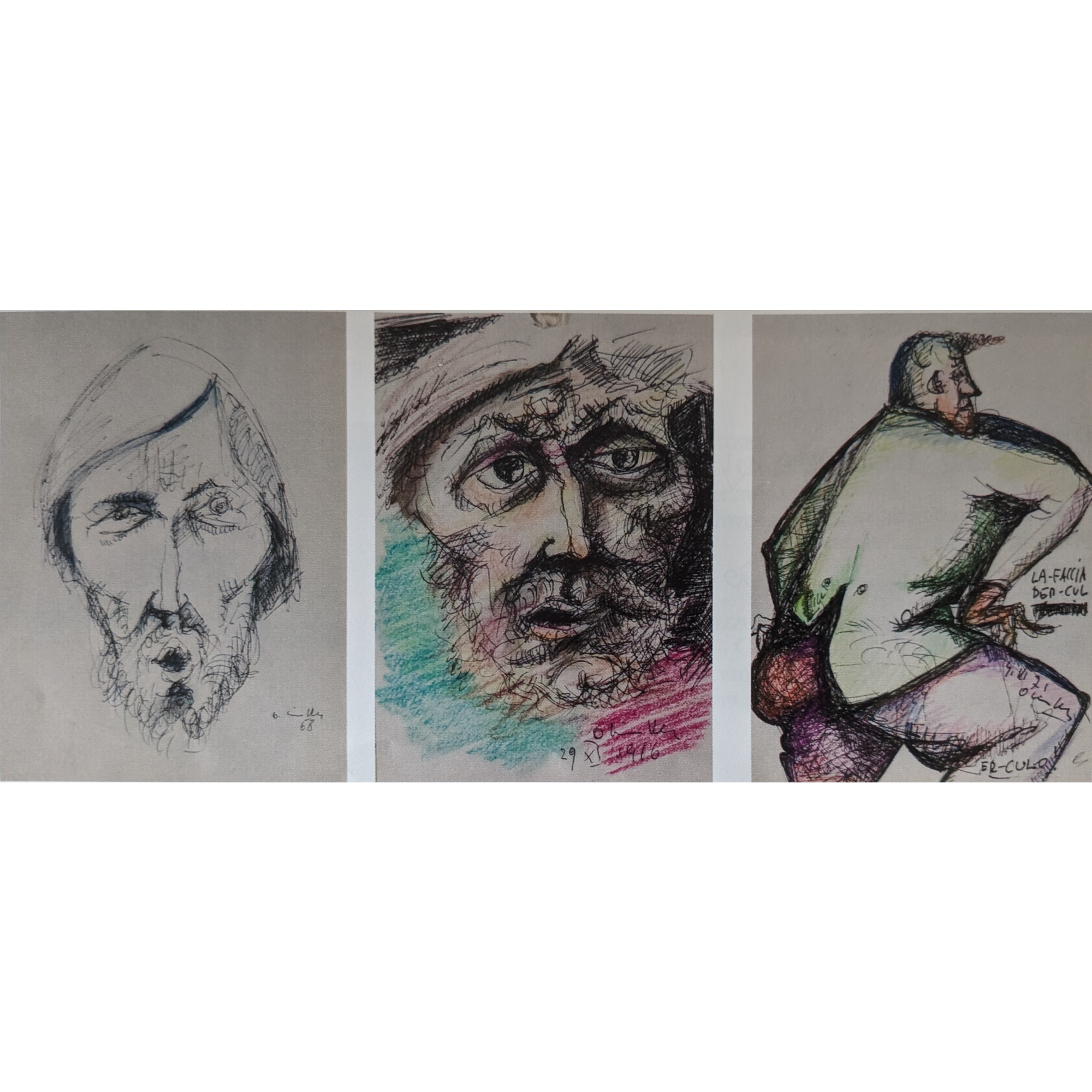 WINKLER OTHMAR - NR. 3 OPERE - VOLTO MASCHILE CON BARBA 20X15 CHINA SU CARTA (1968) - VOLTO MASCHILE 20X15 TECNICA MISTA SU CARTA (1966) - LA FACCIA DER CUL ER-CULO 20x15 TECNICA MISTA SU CARTA (1961)