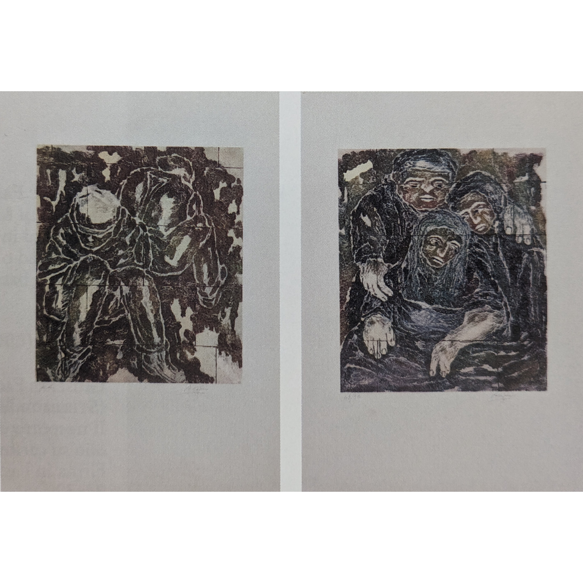 ANONIMO - NR. 2 OPERE - UOMINI SEDUTI. 50X70 LITOGRAFIA P.A. - UNA FAMIGLIA 50X70 ESEMPLARE 49/90