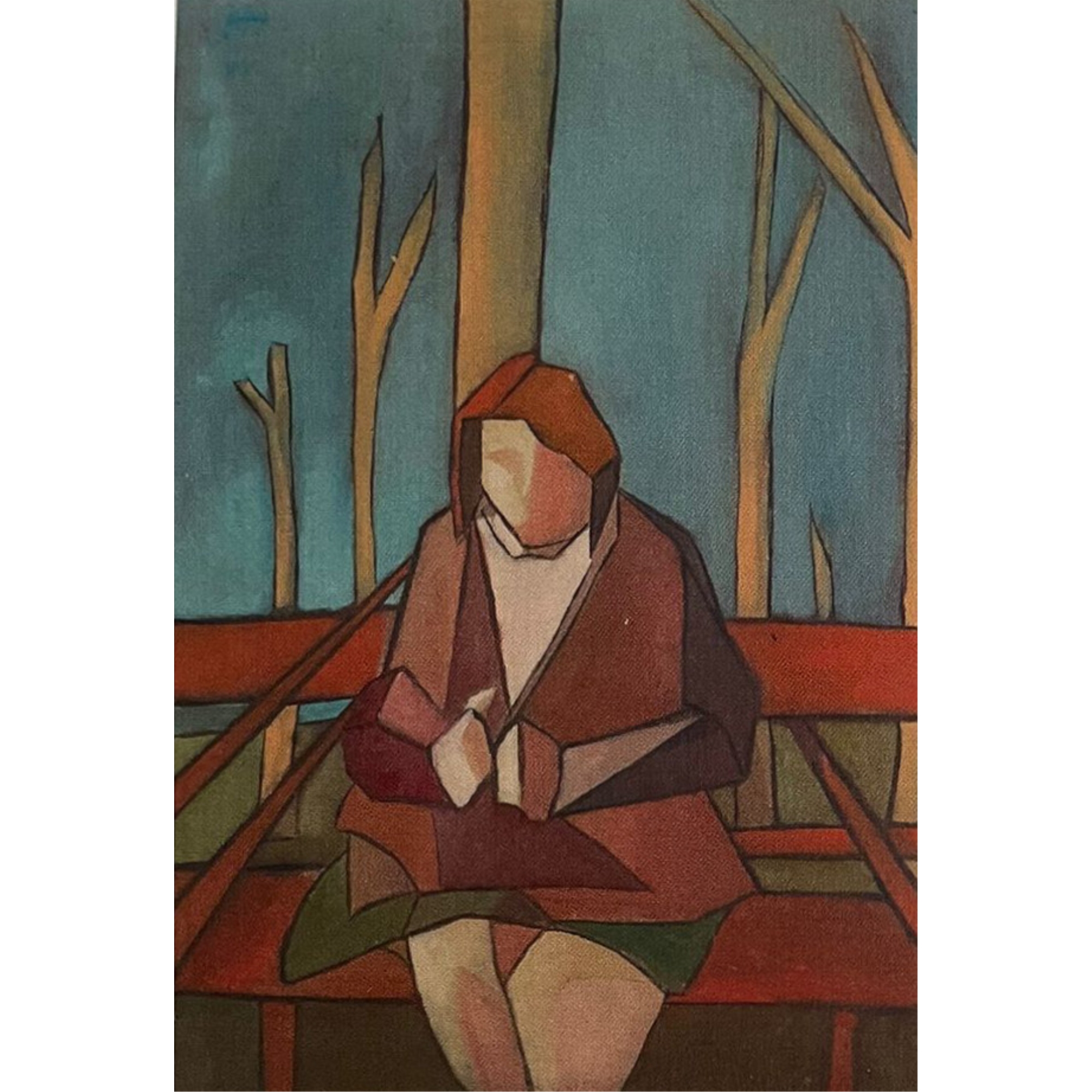 ANONIMO - DONNA SEDUTA 60X40 OLIO SU TAVOLA. SENZA FIRMA