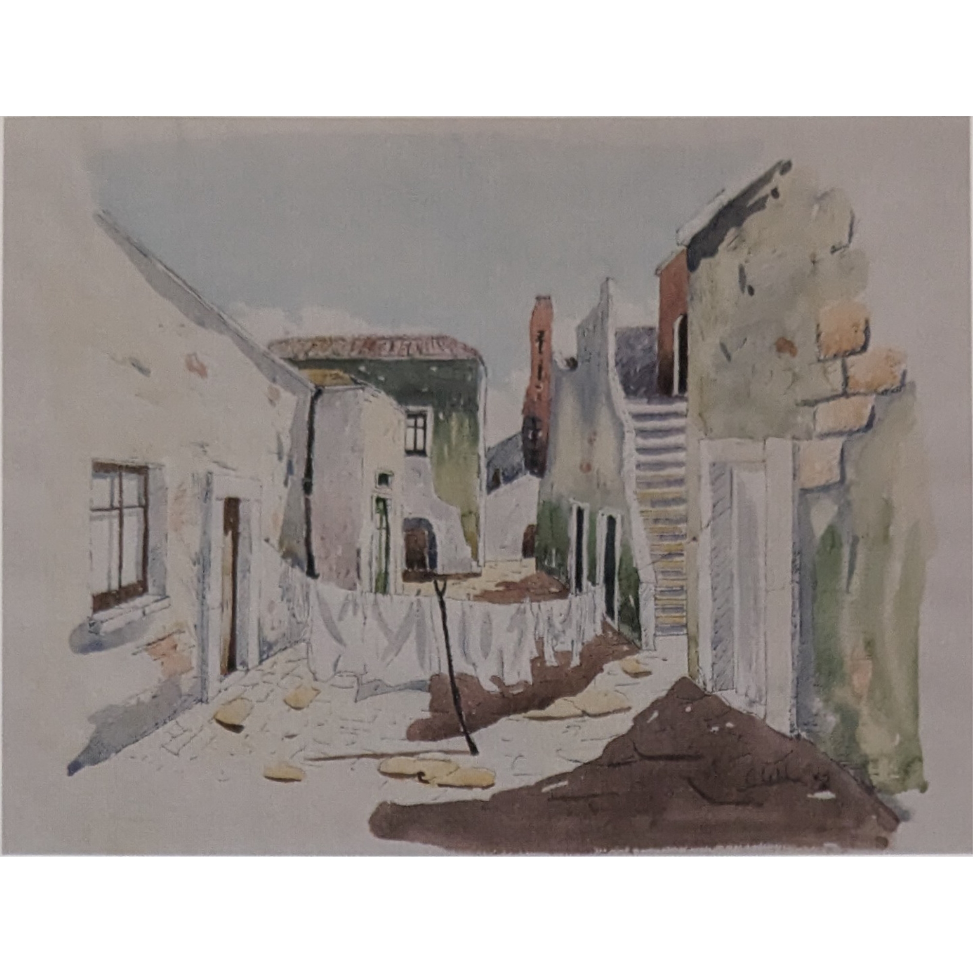 ANONIMO - PAESE GRECO 29X42 ACQUERELLO E CHINA SU CARTA (1989). FIRMA...