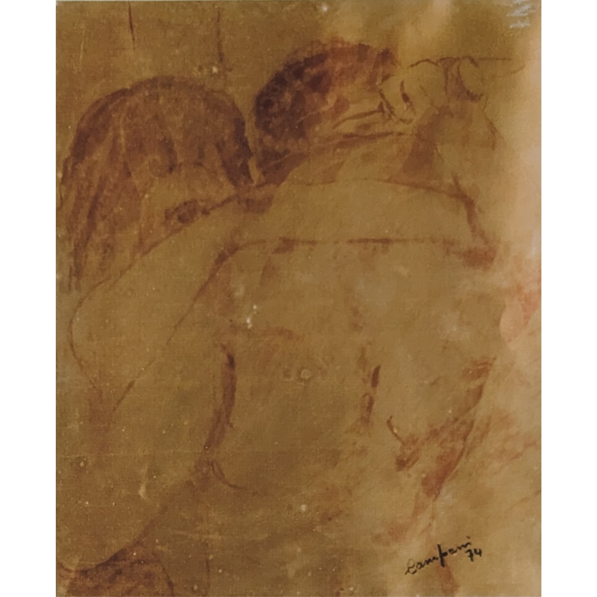 CAMPANI WALTER - VOLTI 48.5X58.5 TECNICA MISTA SU CARTONE. VINCITORE DEL PREMIO ''L. RATINI'' TRENTO
