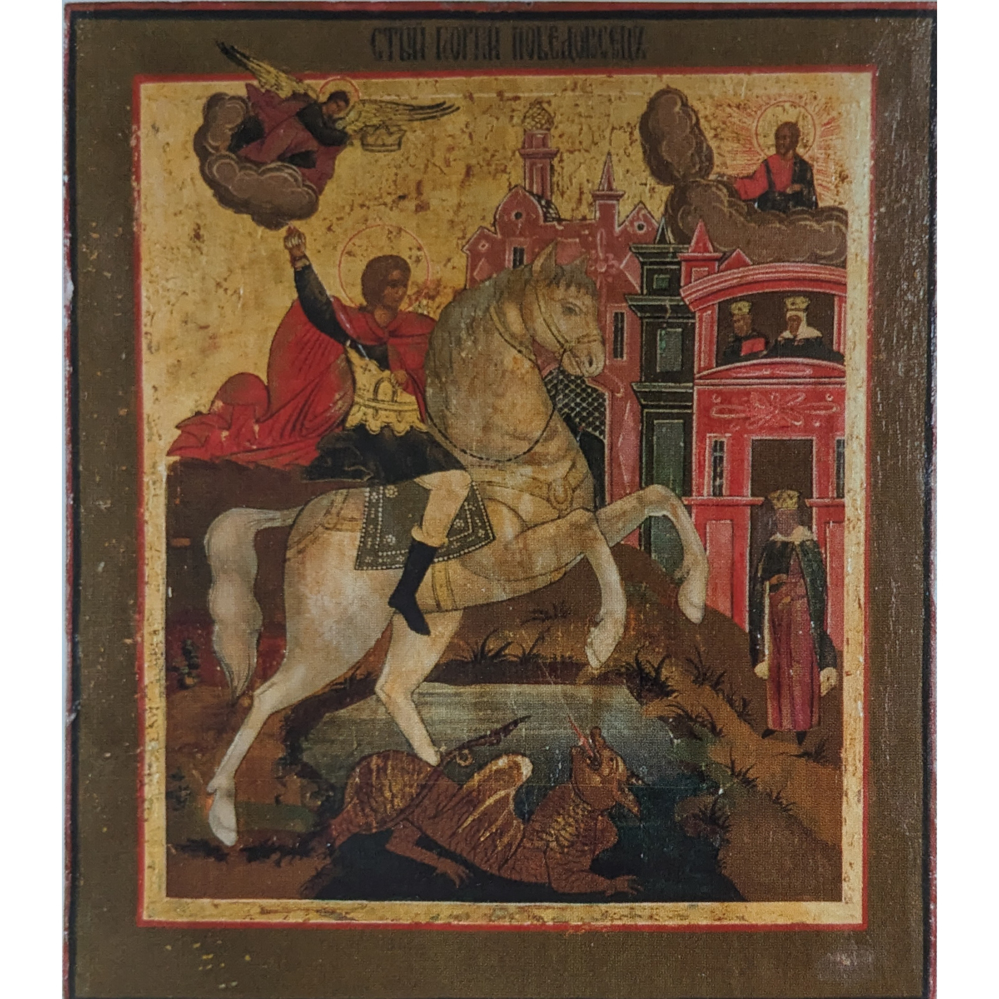 ANONIMO - SAN GIORGIO E IL DRAGO 44X38.5 ICONA XIX SECOLO