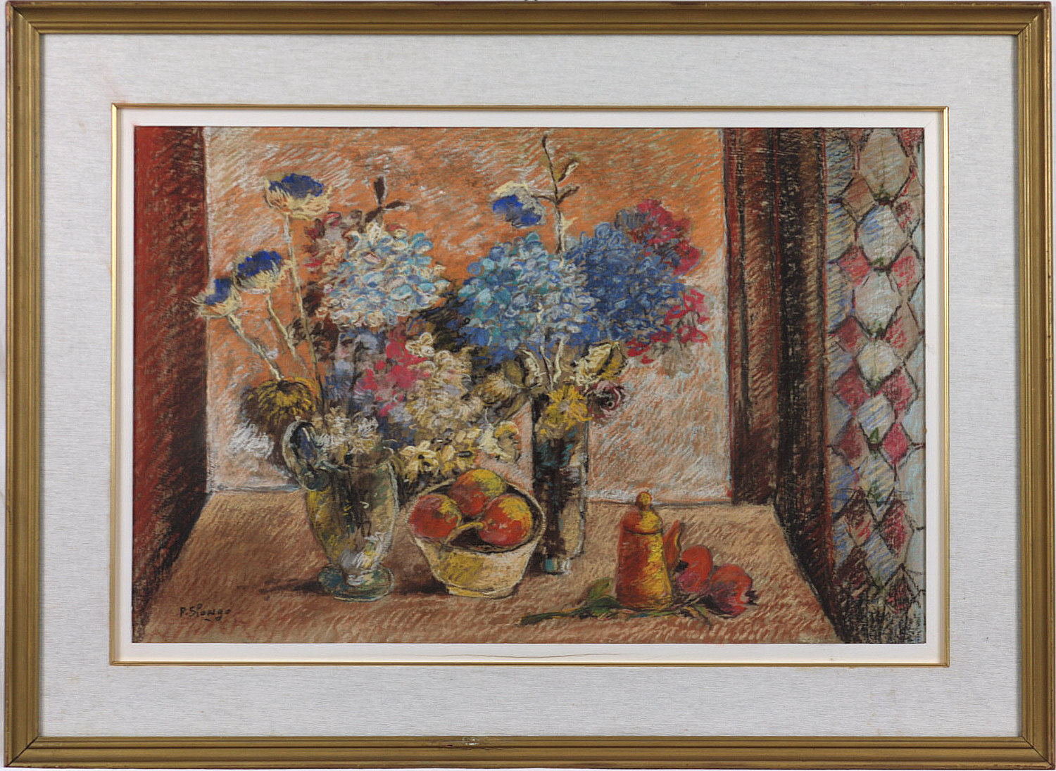 Piero Slongo (1928-2015) Fiori secchi Pastelli su carta intavolata cm 45x70...