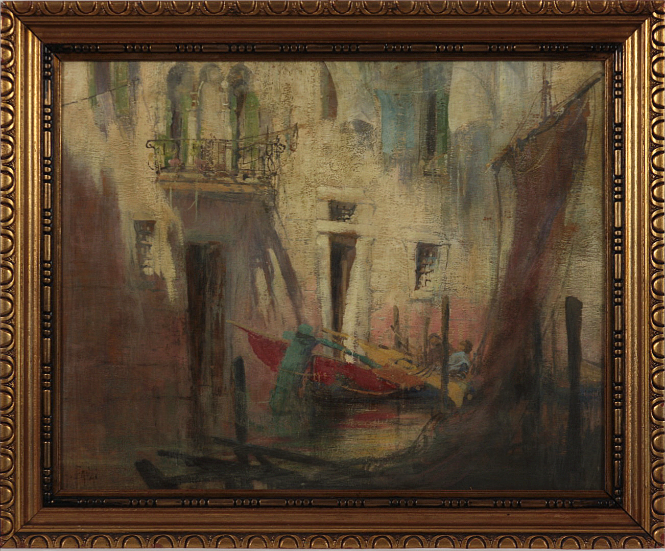 Gennaro Favai (1879-1958) Scorcio Veneziano Olio su tavola cm 40x50 Firma in...