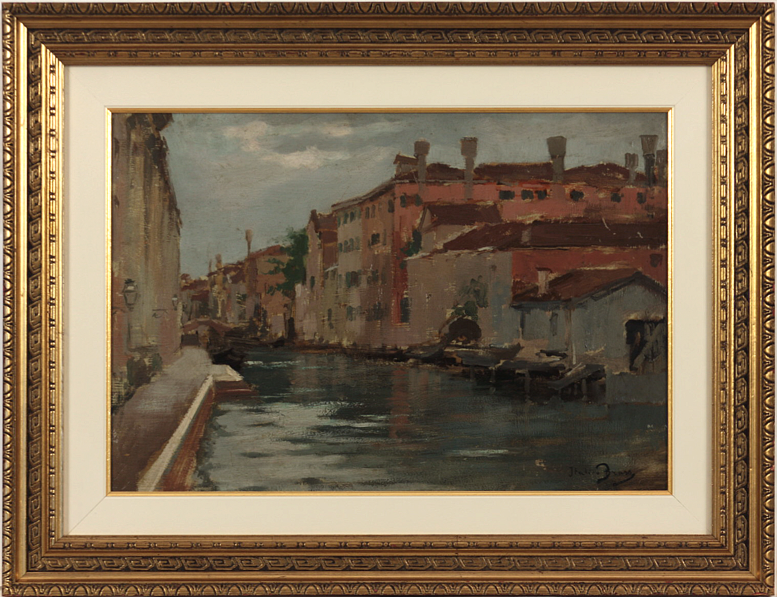 Italico Brass (1870-1943) Venezia Olio su tavola cm 33x48 Firma in basso a...
