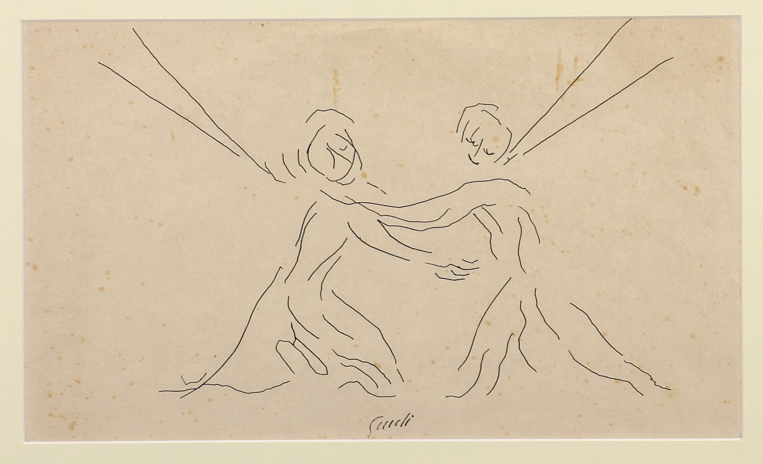 Virgilio Guidi (1891-1984) Incontro China su carta cm 21x35 Firma in basso al...