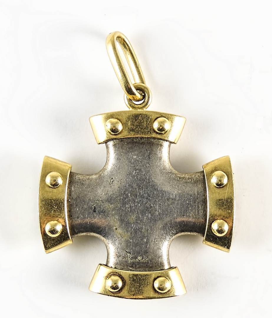 CROCE IN ORO GIALLO E ARGENTO - GOLD AND SILVER CROSS Pomellato, Anni Ottanta...