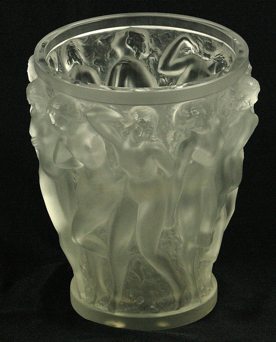 Renè Lalique (attr.) (1860-1945) Baccanti Vaso in vetro cm 24x21x21