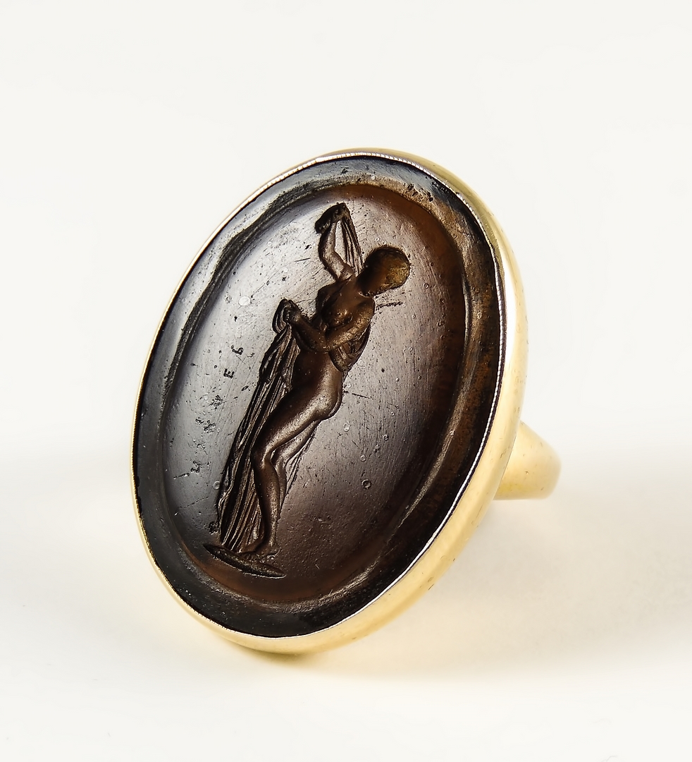 ANELLO IN ORO GIALLO E CAMMEO IN PIETRA DURA - GOLDEN RING WITH A HARD STONE CAMEO XIX secolo - 19th Century cammeo inciso con Afrodite ed iscrizione in greco antico gr 15,3
