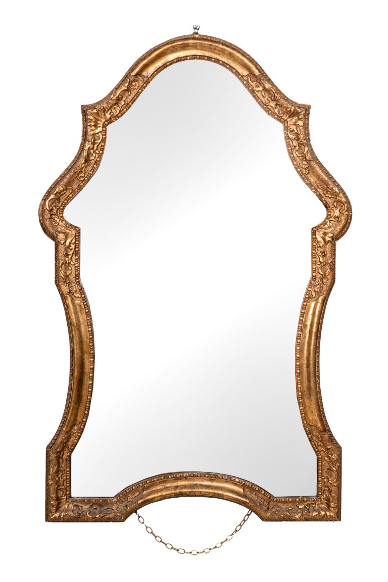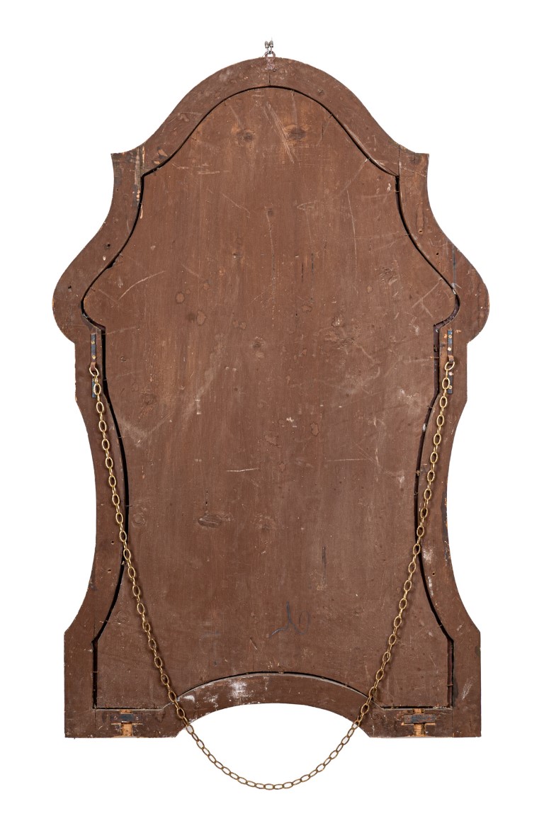 realizzata di forma sagomata, decorata con motivi fitomorfi
