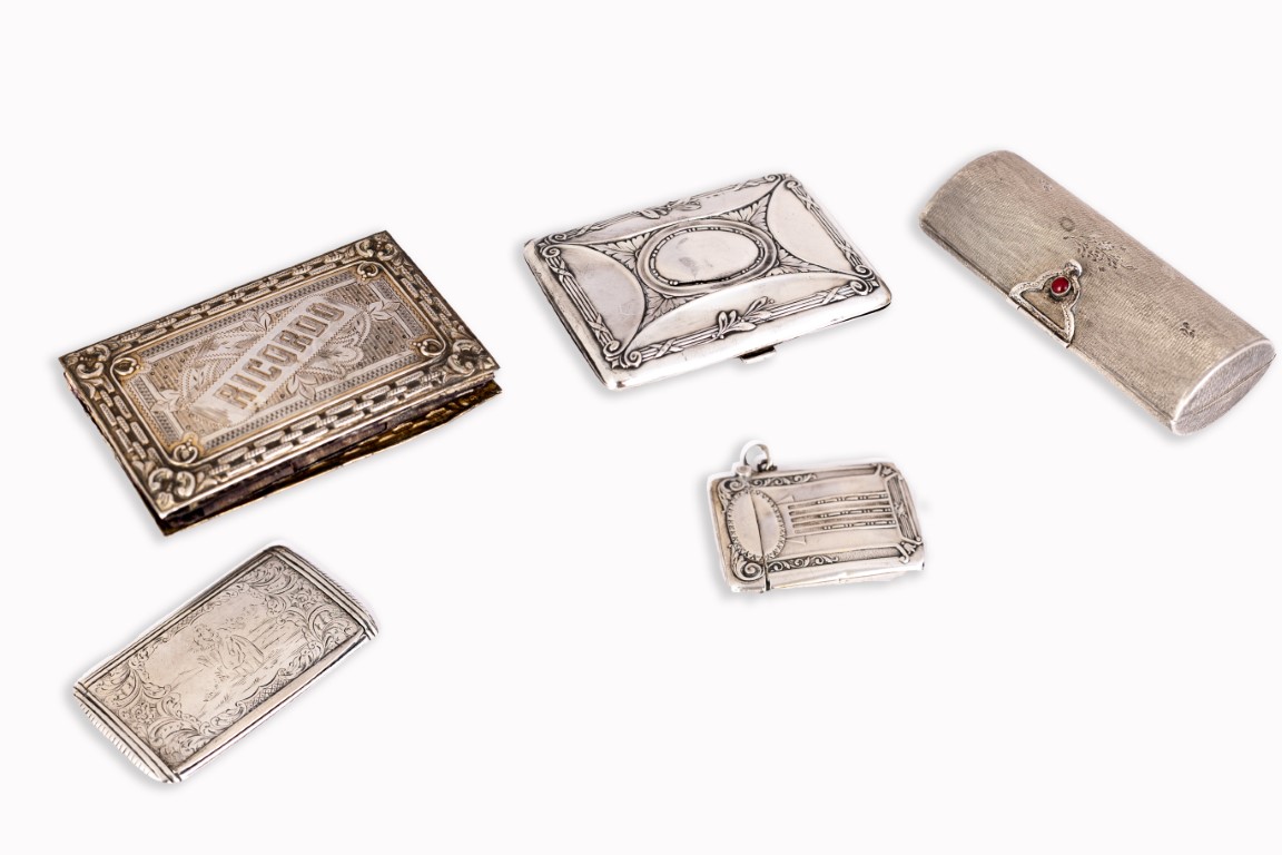 composto da un carnet de bal con copertine in argento cesellato e la scritta RICORDO, e quattro scatoline in argento cesellato