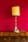 realizzato con fusto a balaustro con foglie intagliate, base tripode, montato a lume