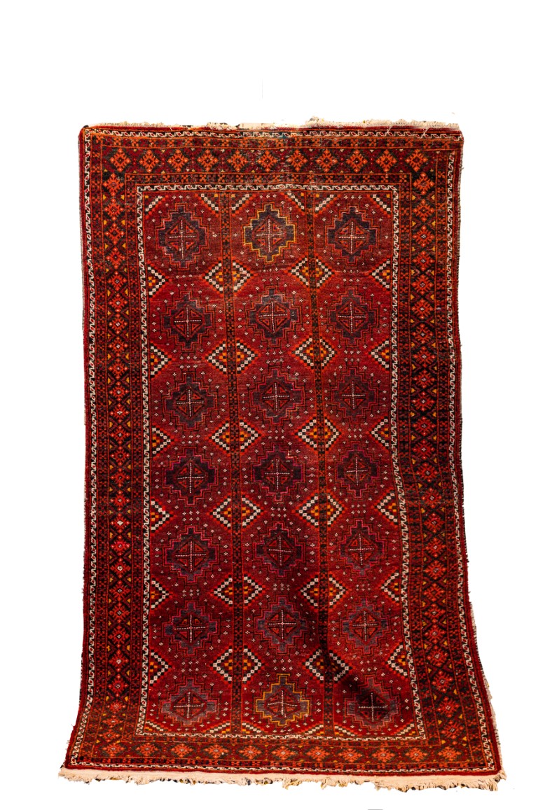 campo realizzato a motivi geometrici nei toni del rosso e dell'avorio