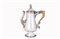 realizzata in stile settecentesco, coperchio con presa a ghianda, becco a voluta, manico in legno ebanizzato, base perlinata
