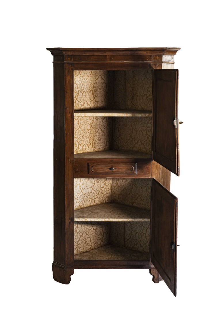 Lotto 225 | Angoliera in noce a patina chiara intarsiato