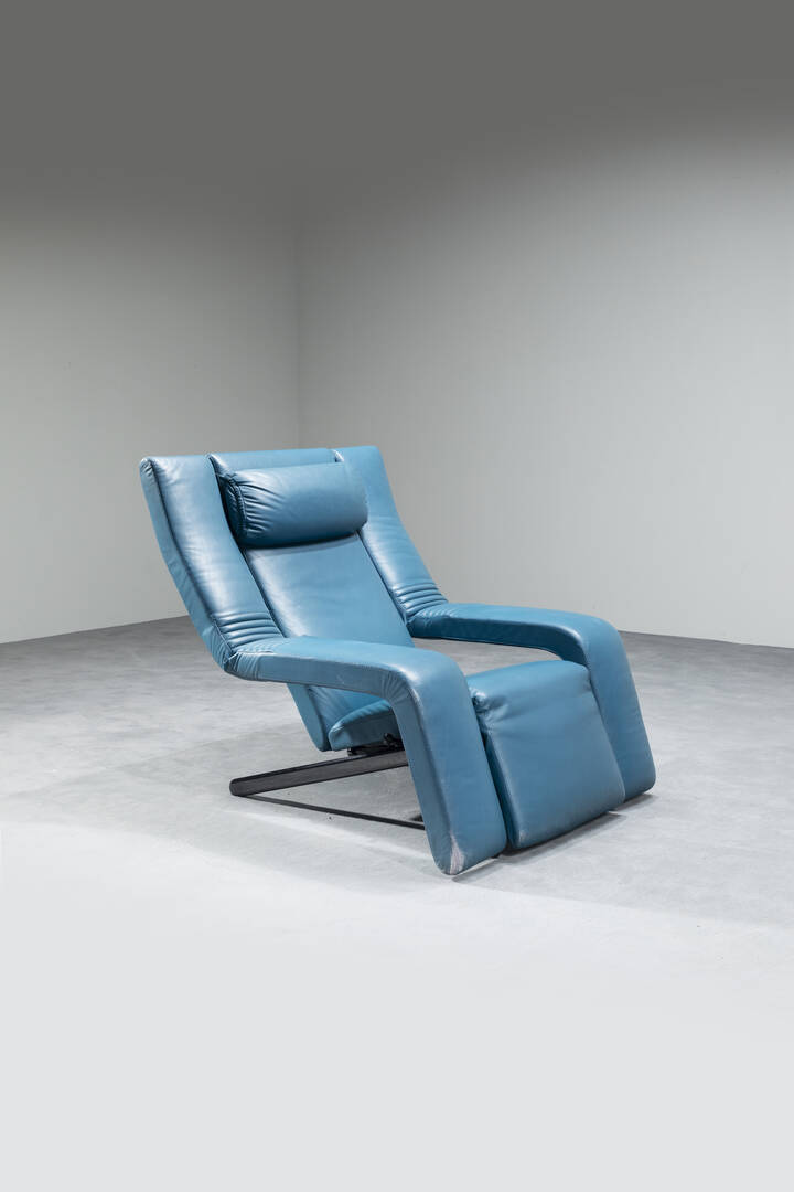 Poltrona reclinabile con struttura in metallo annegata in schiuma poliuretanica igniguga e supporti in ferro laccato