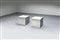 Coppia di tavolini in acciaio lucidato, piani in marmo.