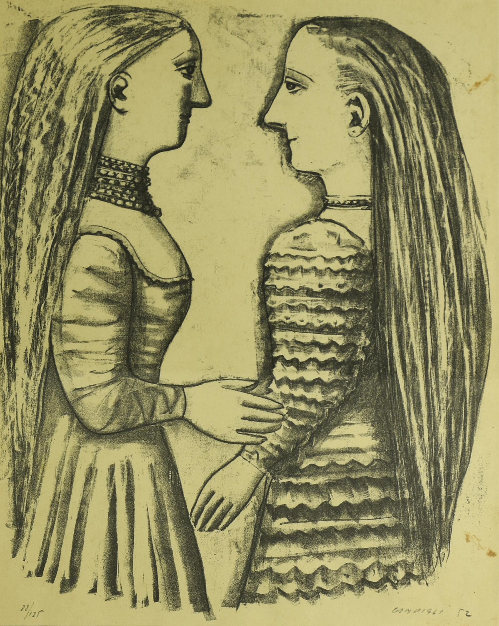 Massimo Campigli DUE FIGURE riproduzione fotolitografica su carta, cm 27x21...
