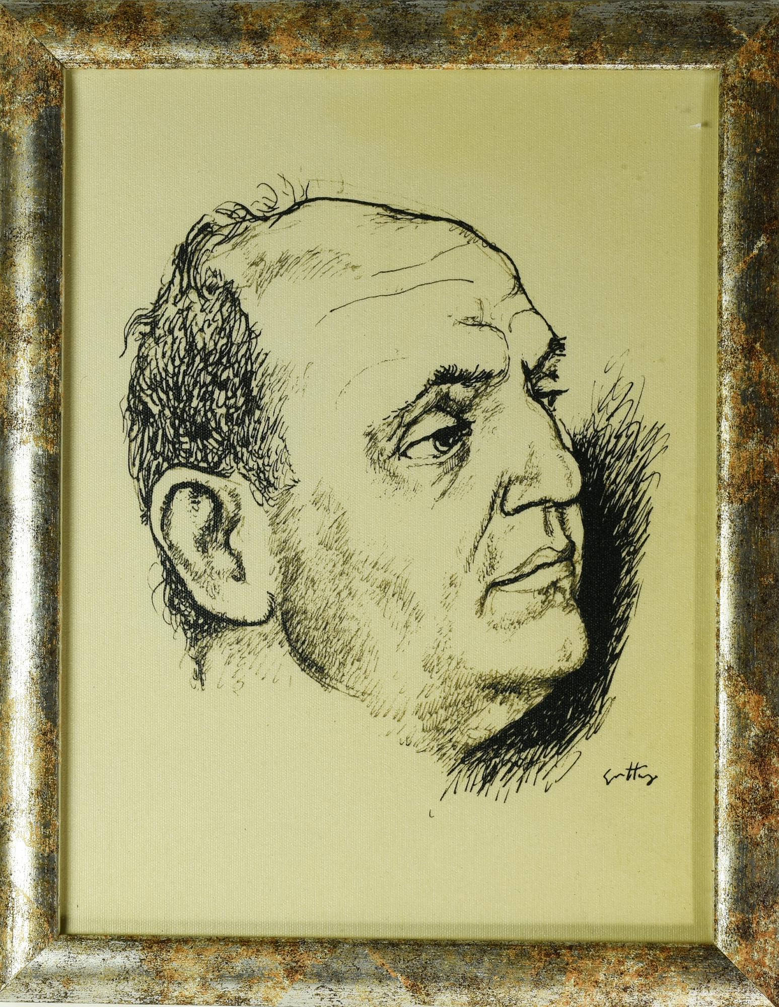 Renato Guttuso RITRATTO MASCHILE stampa su tela, cm 40x30 firma in lastra