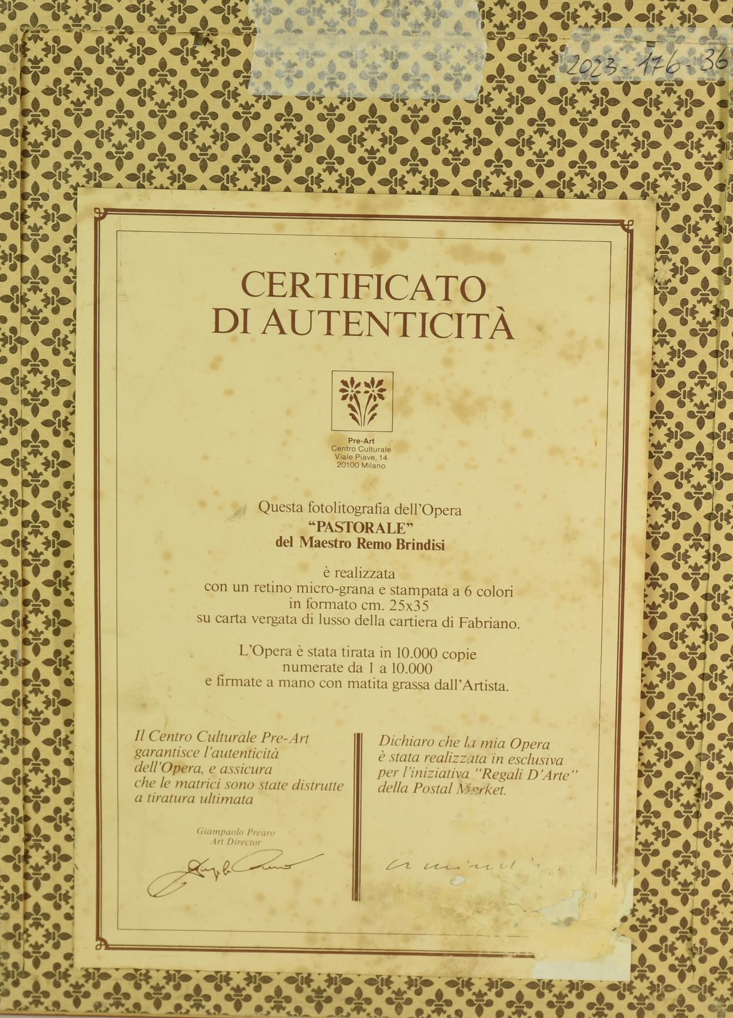 Remo Brindisi PASTORALE fotolitografia su carta, cm 35x25, esemplare x/10.000...