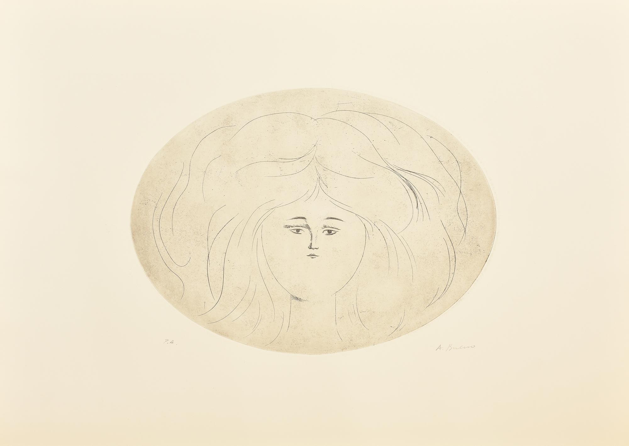 Antonio Bueno RITRATTO SU SFONDO NERO incisione su carta, battuta cm 30x40,...